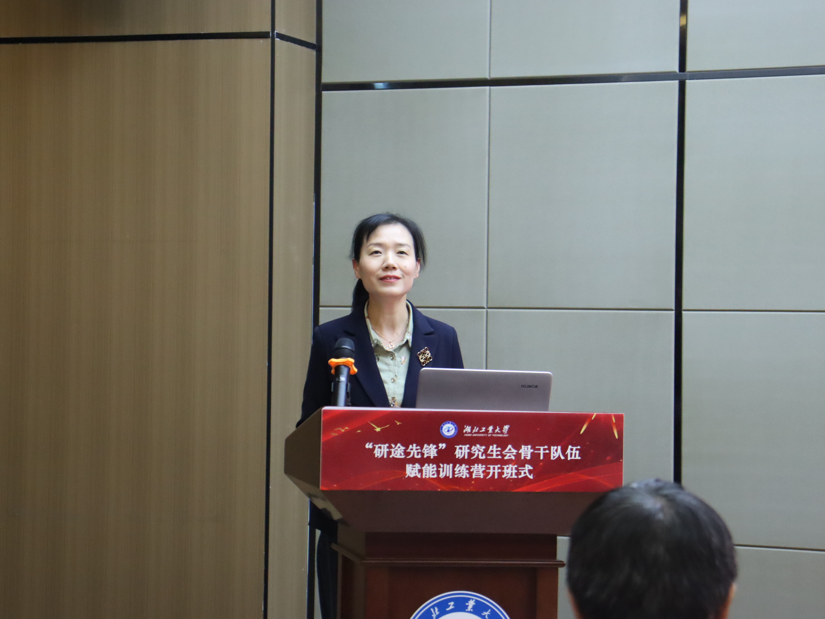 党委研工部部长关向娟在开班式上致辞。她表示,我国正处在加快建设教育强国、科技强国、人才强国的关键时期,加强研究生会骨干建设,是健全“三全育人”工作机制的重要举措,本次训练营如期开班,恰逢其时。同时,她向全体研究生会同学提出四点期望:一是坚定理想信念,把准青春航向;二是锤炼过硬本领,服务同学成长;三是加强作风建设,强化团队力量;四是强化协同联动,凝聚组织合力。争做新时代优秀研会骨干,为学校研究生教育事业贡献青春力量。