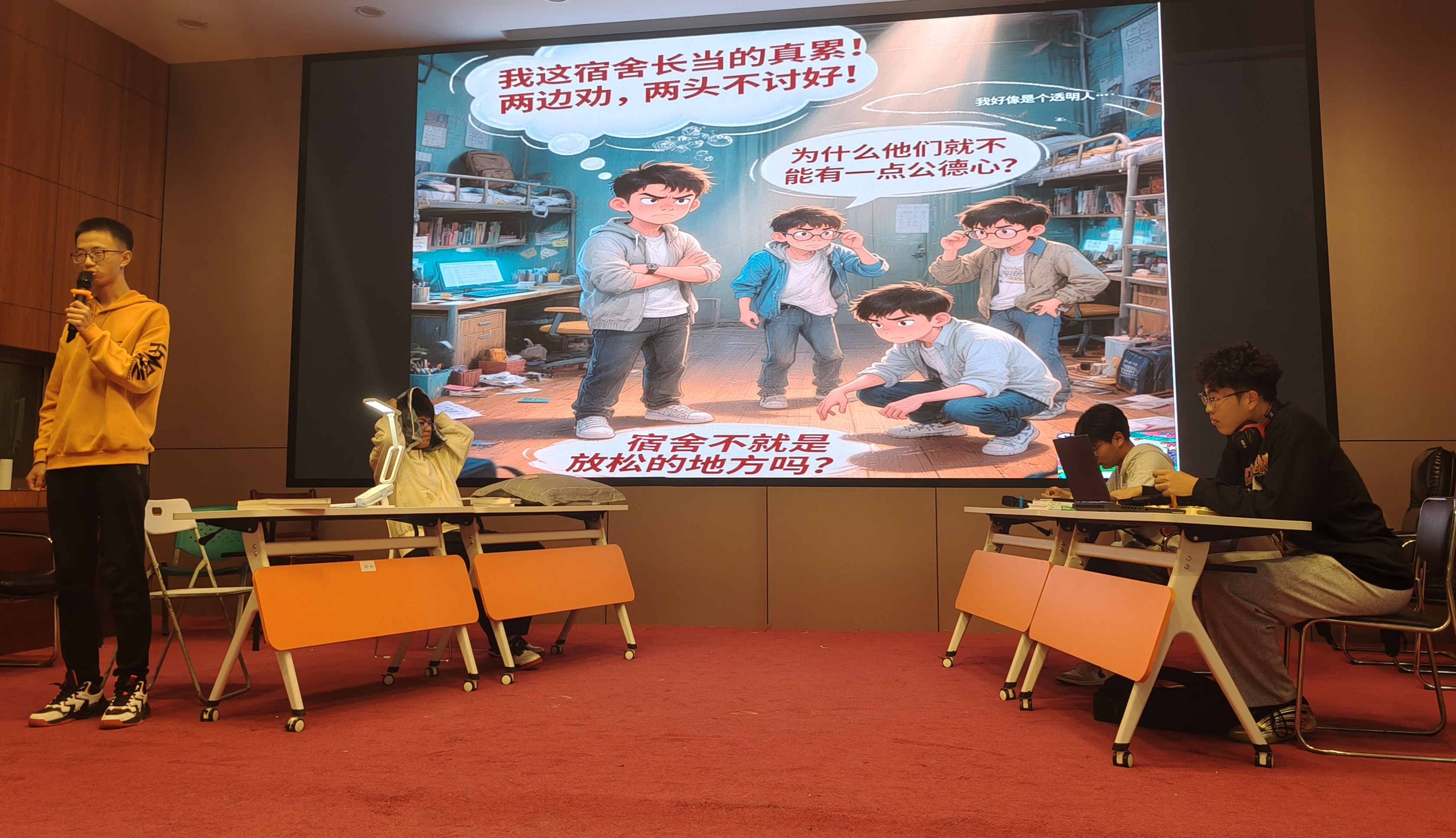 心理舞台剧作品均由本科学生自编自导自演,题材丰富、视角多元。有的聚焦新生适应集体生活的心理历程,细腻刻画了学生从虚拟世界走向现实交往、从迷茫自卑到在包容理解中融入集体的成长蜕变,传递出积极乐观的人生态度;有的着眼于自我成长与亲情关系,通过主角与亲友的深度对话,引导学生勇于直面内心、实现与自我及他人的和解;有的注重艺术创新,以辩论赛等新颖形式融合现实与虚构元素,既引发情感共鸣,又彰显戏剧艺术的独特魅力。
