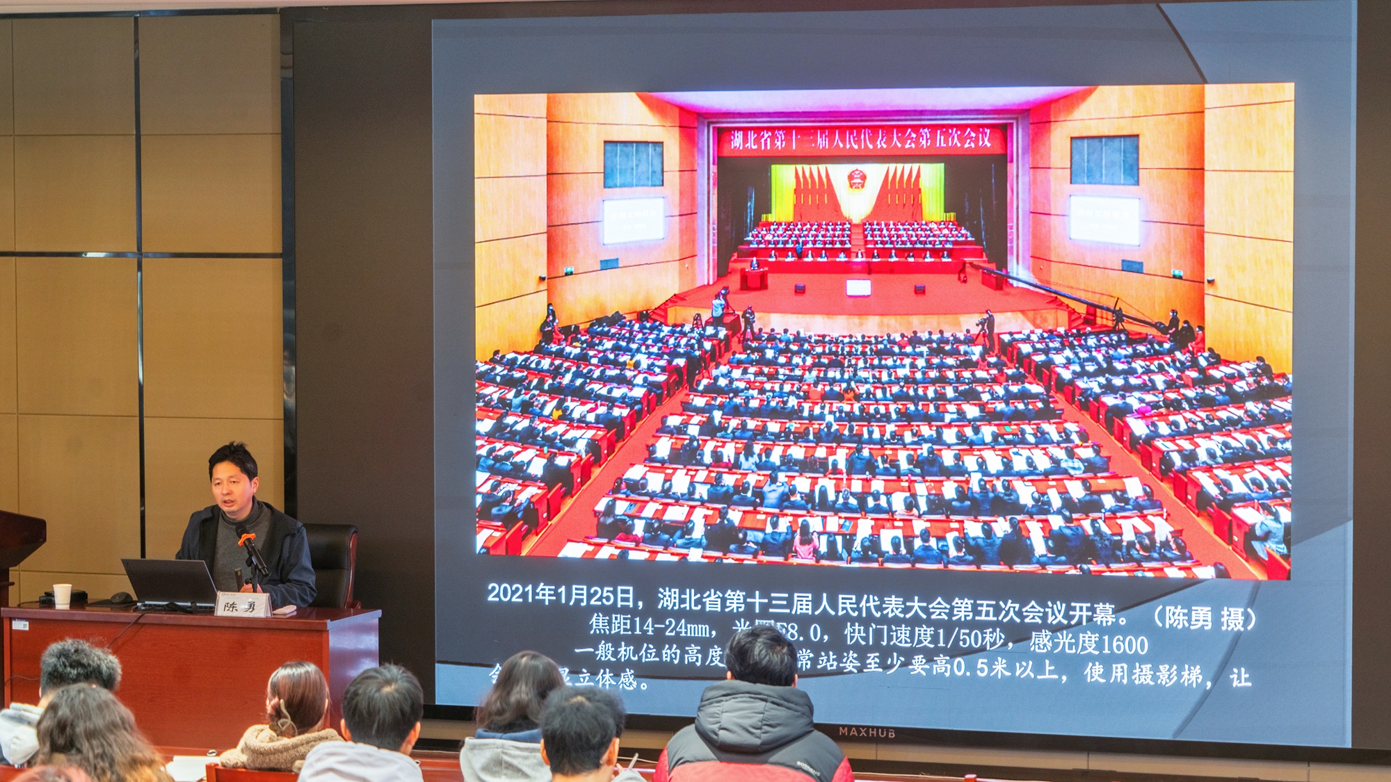 11月27日下午,湖北日报高级记者、《支点》杂志社副总编辑陈勇走进湖北工业大学,以《从记录到表现——新闻拍摄的多重境界》为题,为师生带来一场内容丰富的新闻宣传沙龙讲座,分享新闻摄影的实战技巧与视觉表达心得。本次活动由校党委宣传部校报总编陈凌主持。