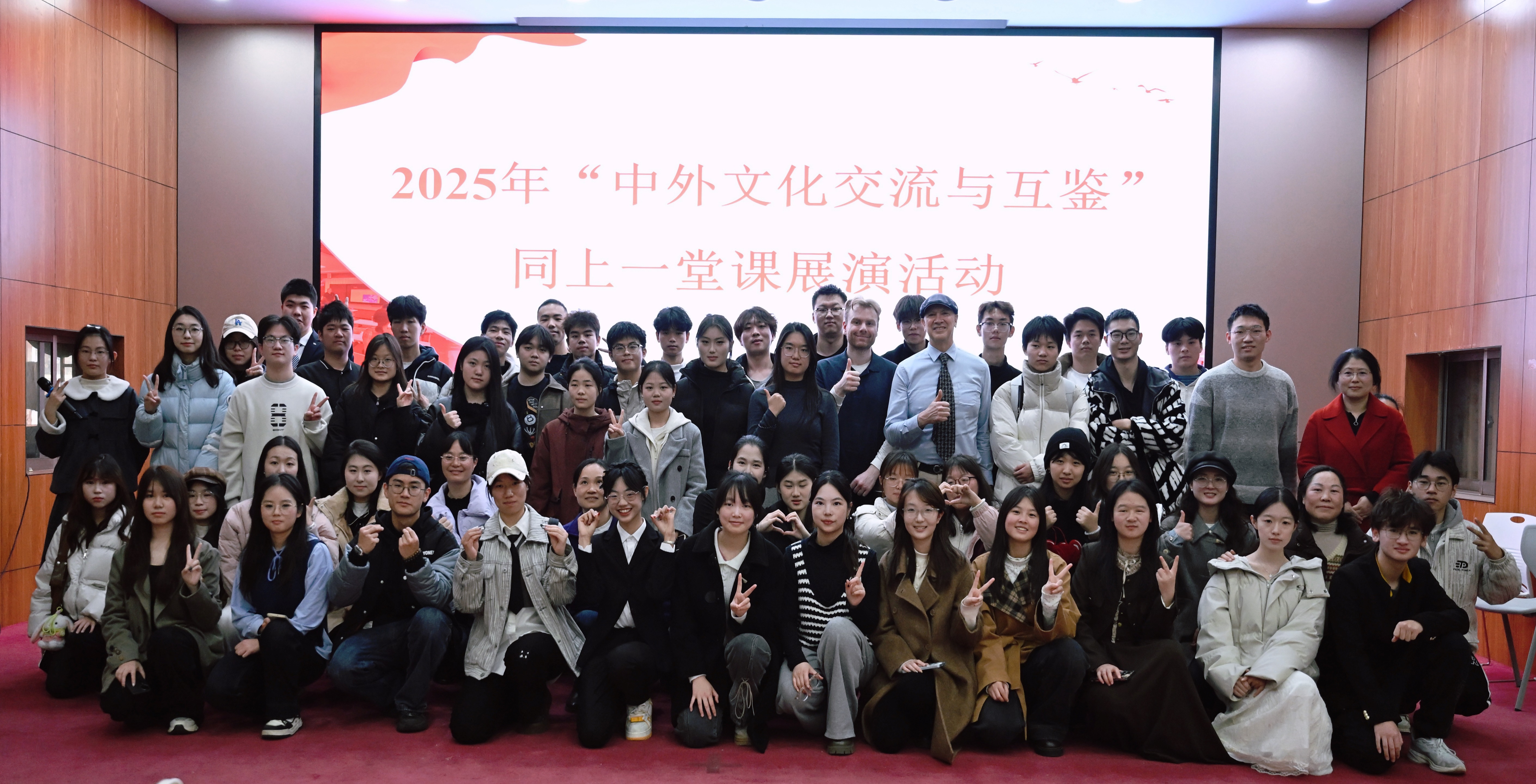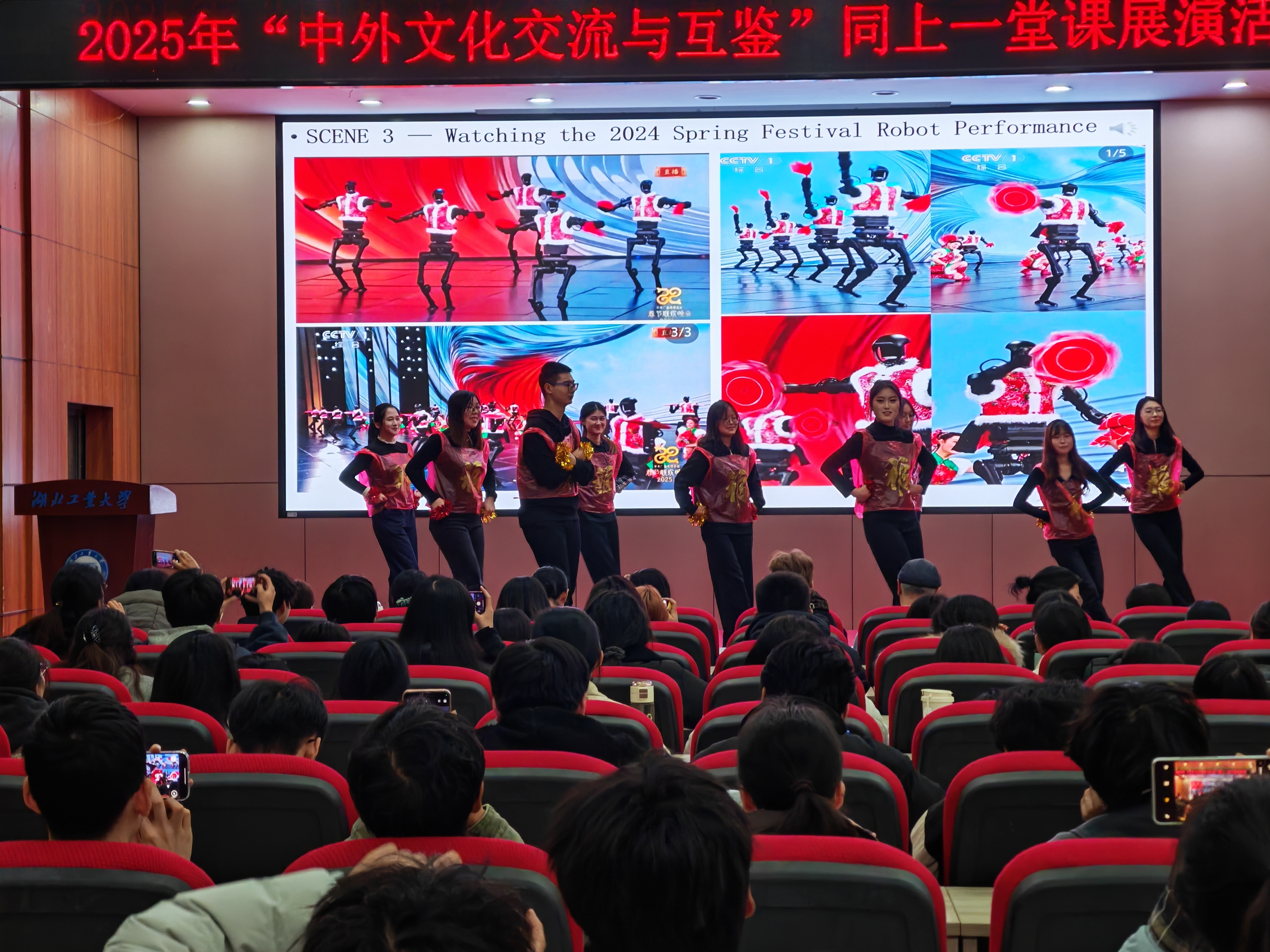12月17日,我校大学英语拓展课程“中外文化交流与互鉴”同上一堂课展演活动在博学堂顺利举行。2025级文化班级学生齐聚一堂,以音乐、科技、婚俗等多元形式搭建中外文化对话桥梁,在精彩纷呈的展演中彰显青春风采,传递文明互鉴的深刻内涵。