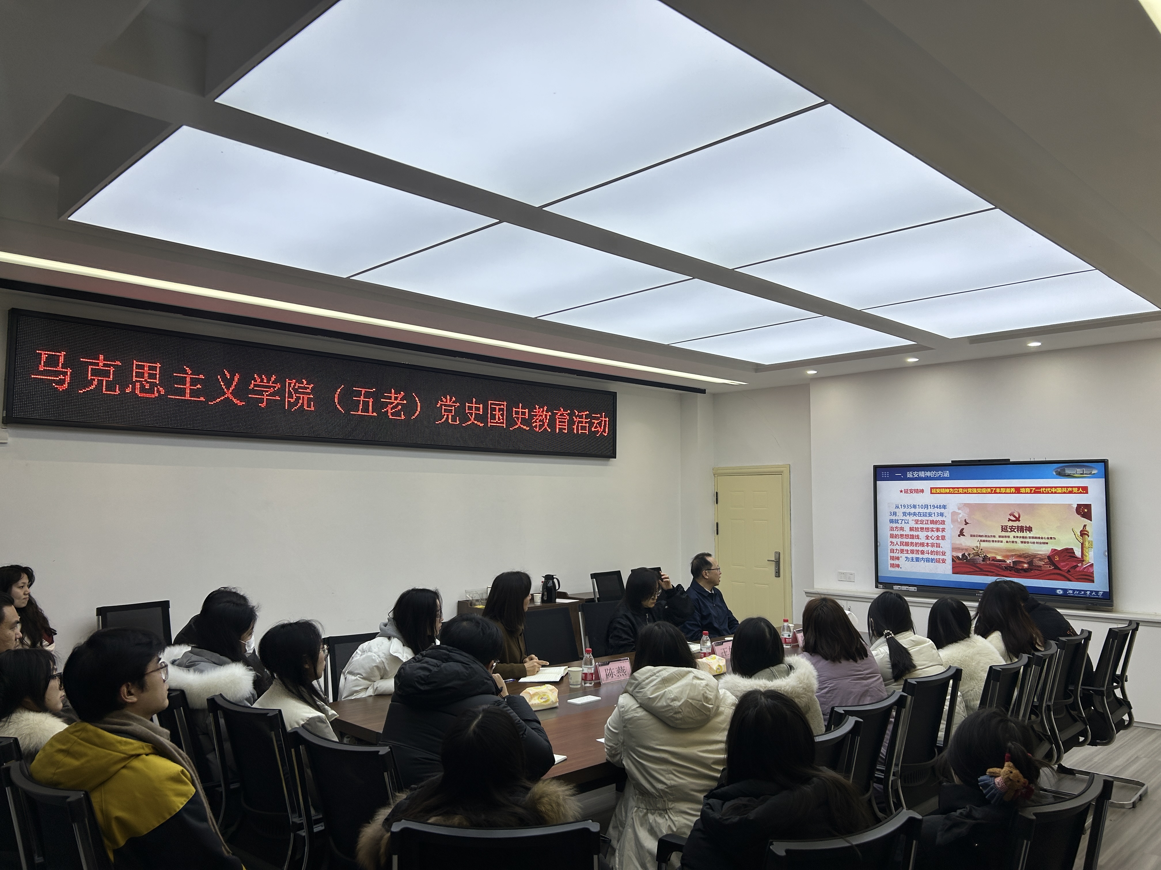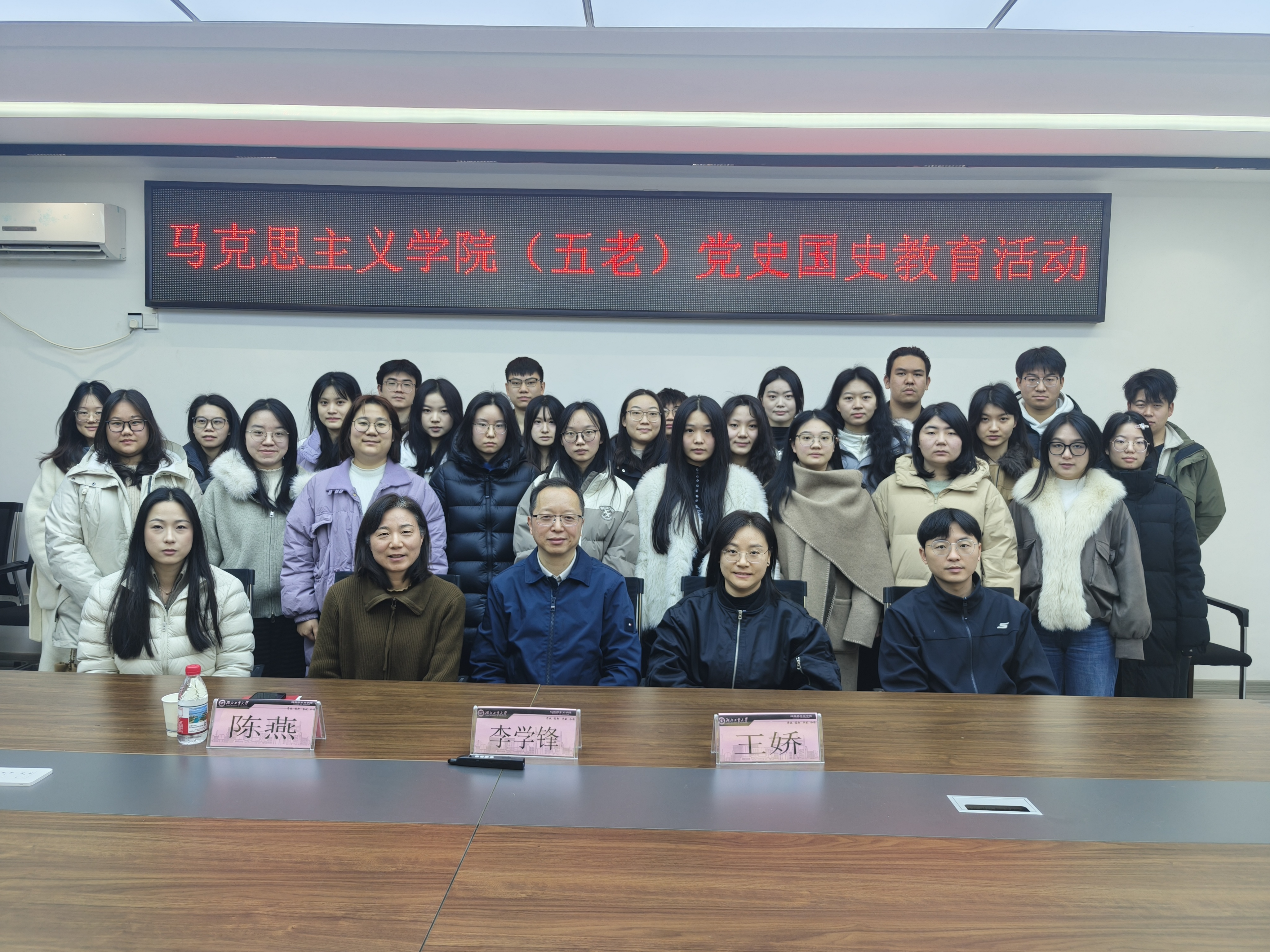 12月26日,马克思主义学院举办“五老”党史国史教育活动。活动邀请湖北省延安精神研究会理事、湖北工业大学关工委副主任李学锋作专题报告,学院党委书记陈燕、副书记王娇出席活动,学院各年级研究生代表参与。