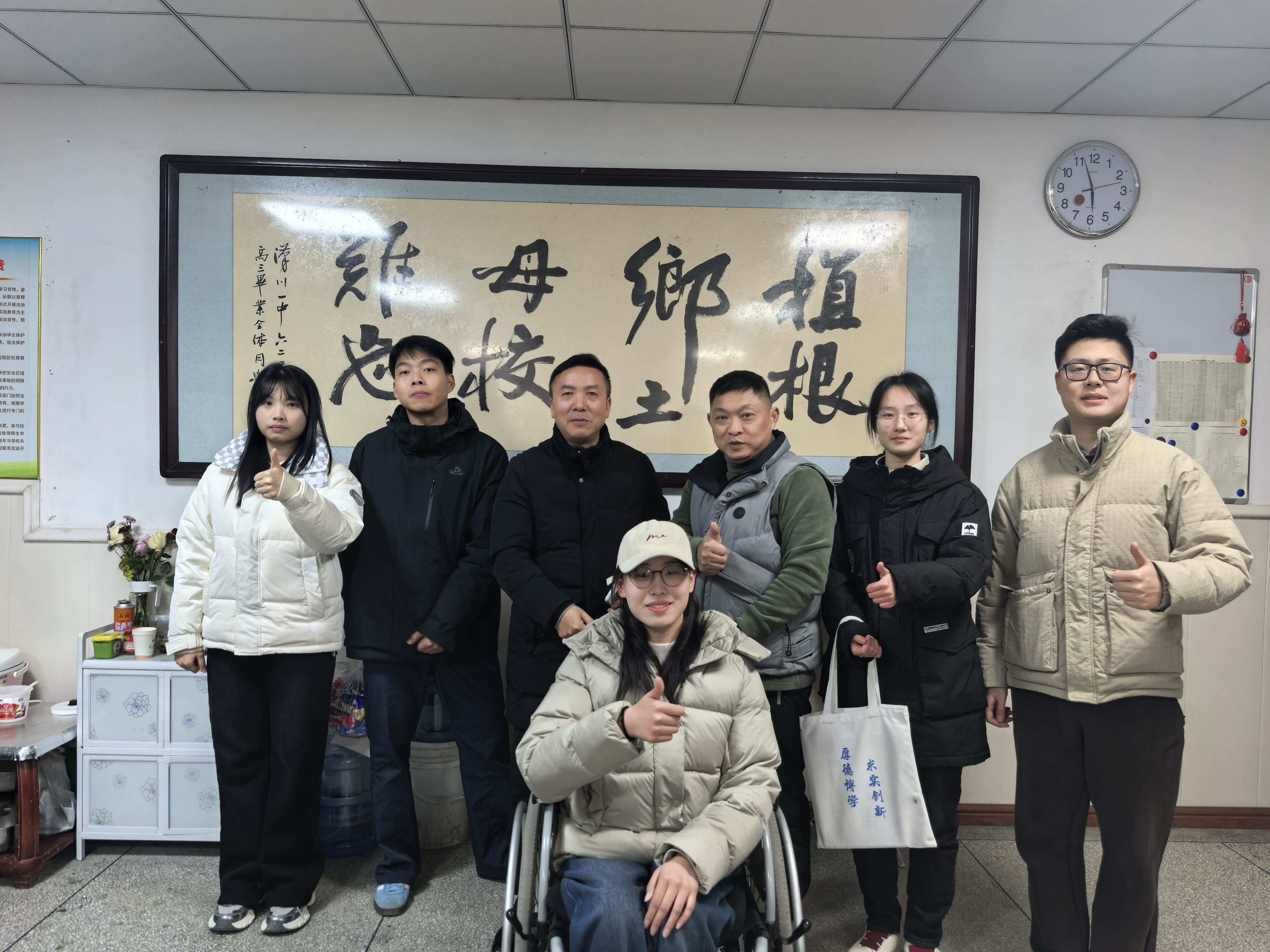 1月18日,材料与化学工程学院辅导员王玥、毛辉煌带队,率外国语学院学子张沁影、经济管理学院李雅林、理学院倪帆组成跨学院团队,重返汉川一中交流分享,以青春力量搭建育人桥梁。