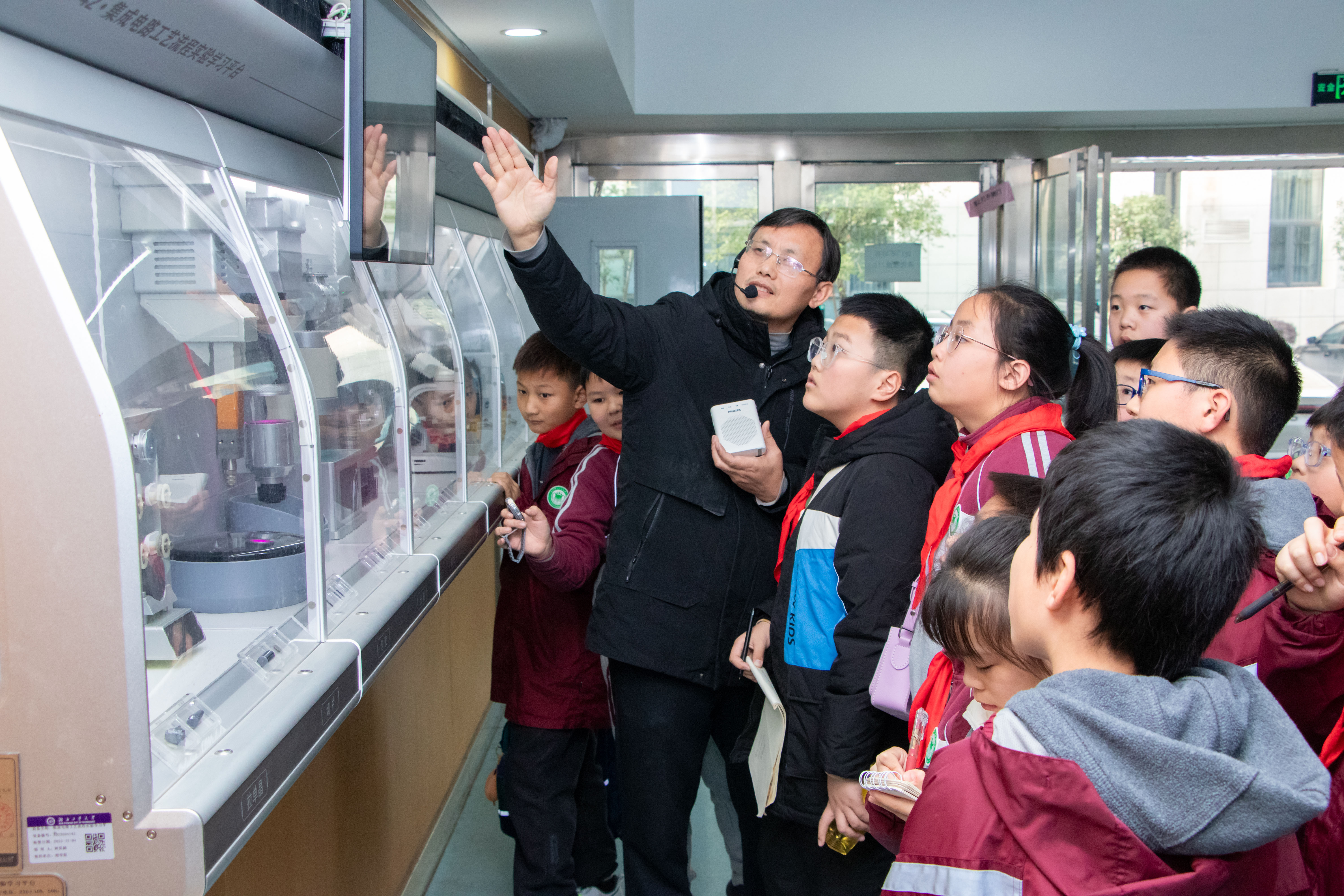 2月18日,理学院姚育成教授在芯片制造工艺流程微缩展示平台前,借助模型和三维模拟动画向同学们介绍芯片诞生全流程。