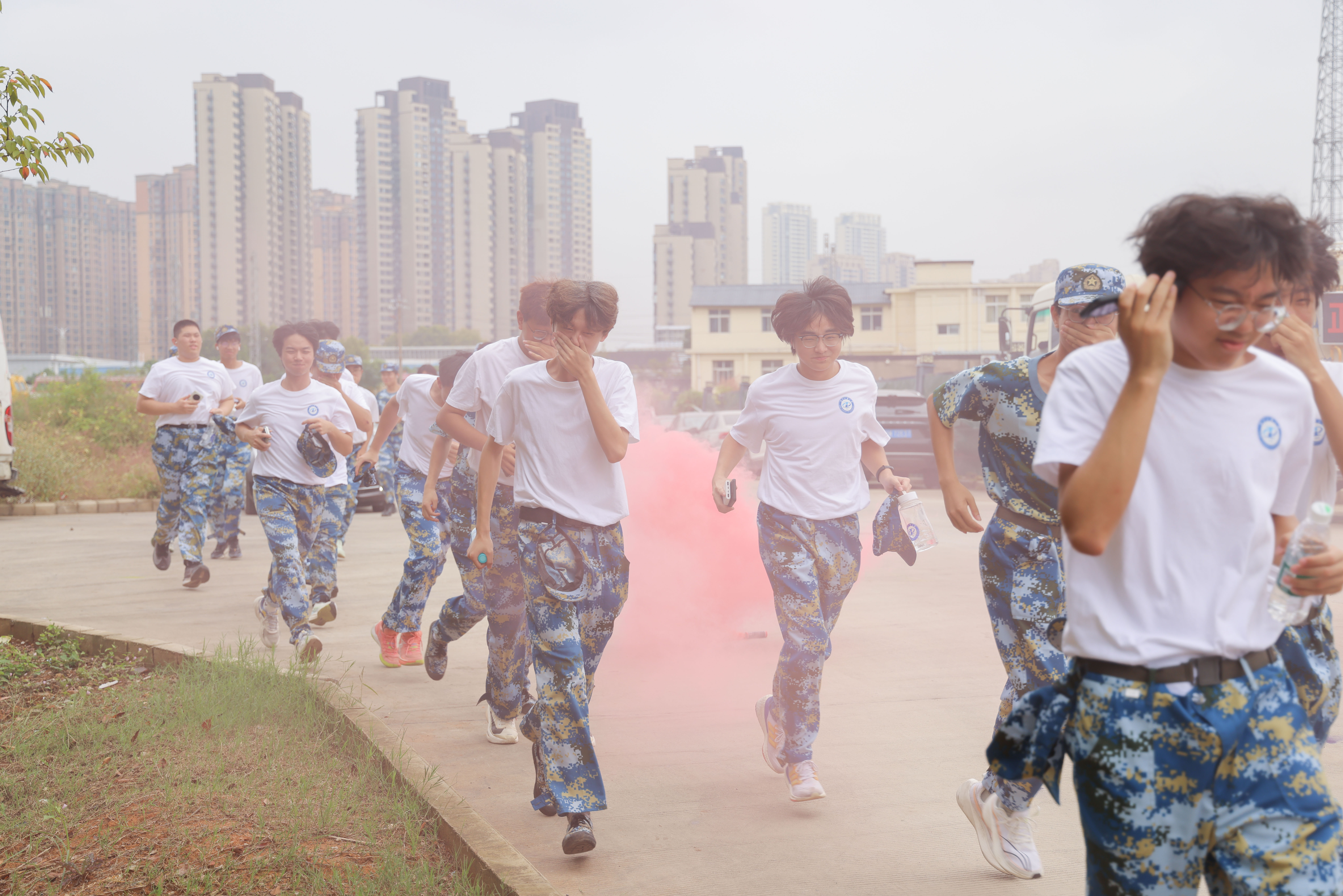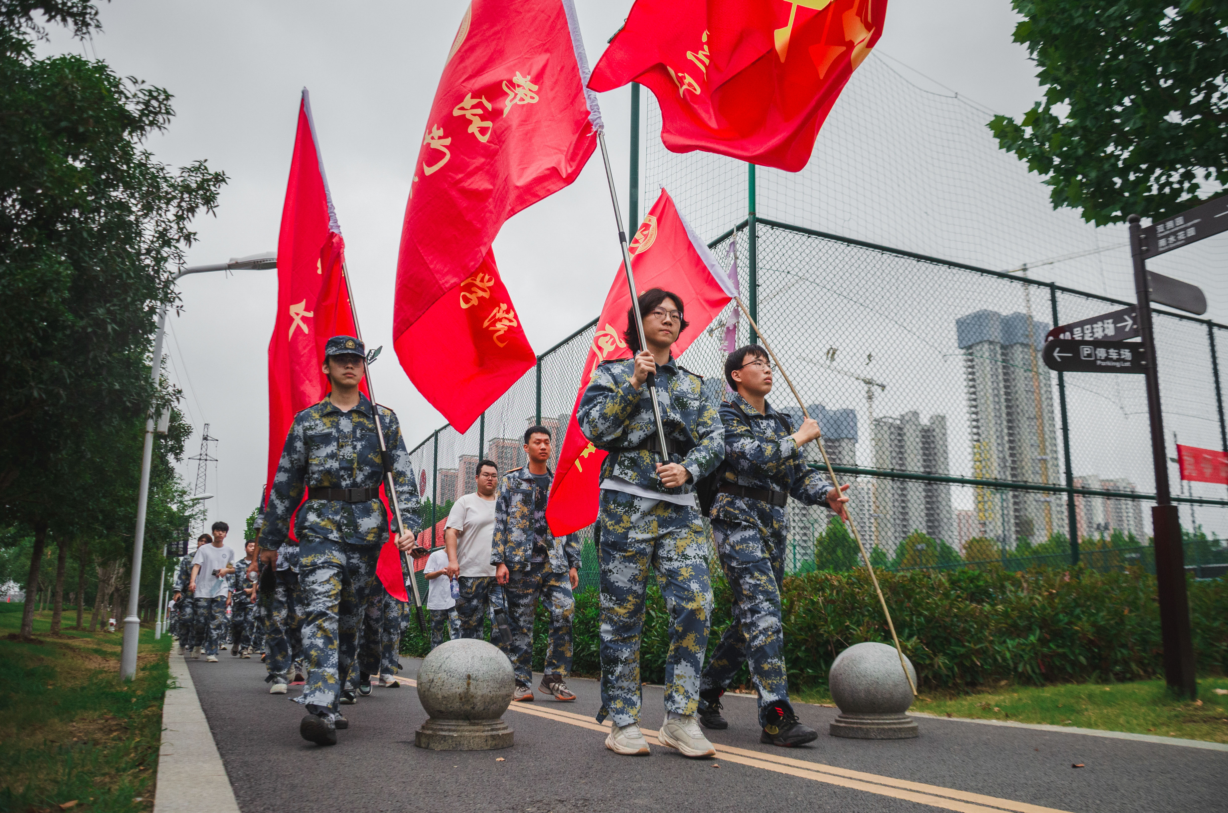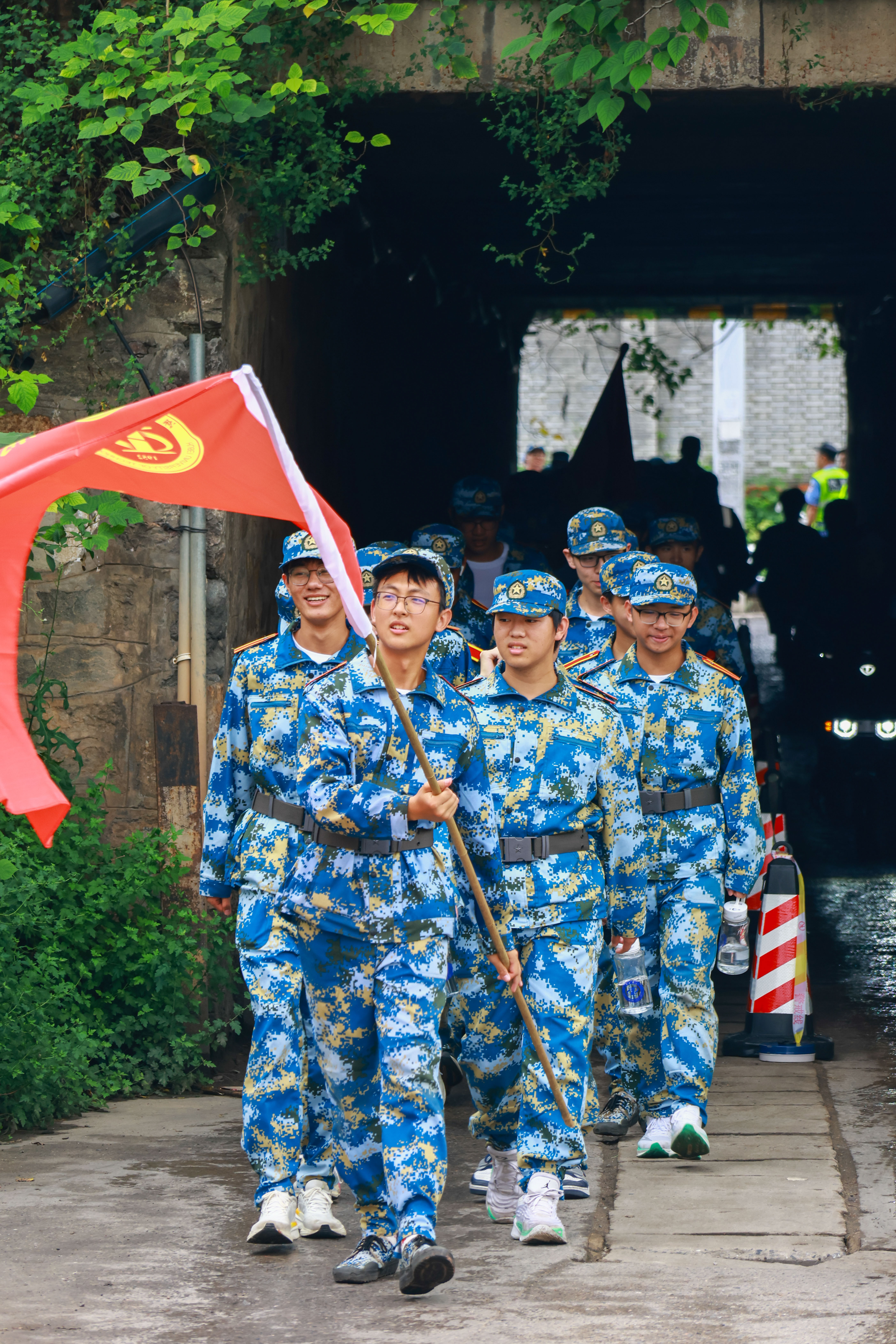 行军拉练队伍分成3个营30个连。沿途中,红旗招展,红歌嘹亮,队伍沿预定路线前进,通过“染毒”地带、“炮火”覆盖区。这段旅程,成为湖工大学子意志与军事技能的 “实战战场”。