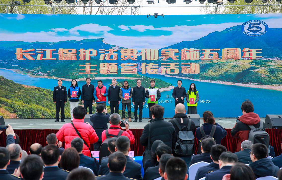 水利部政策法规司陈大勇、水利部长江水利委员会主任廖志伟、武汉市副市长李湛等领导现场为10位“最美民间河湖长”颁发奖状,向2026年获聘武汉市“民间河湖长”的代表授旗。