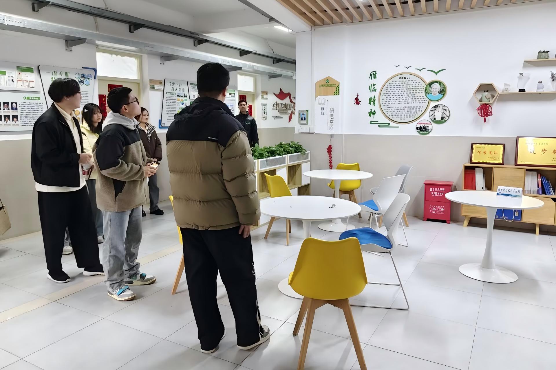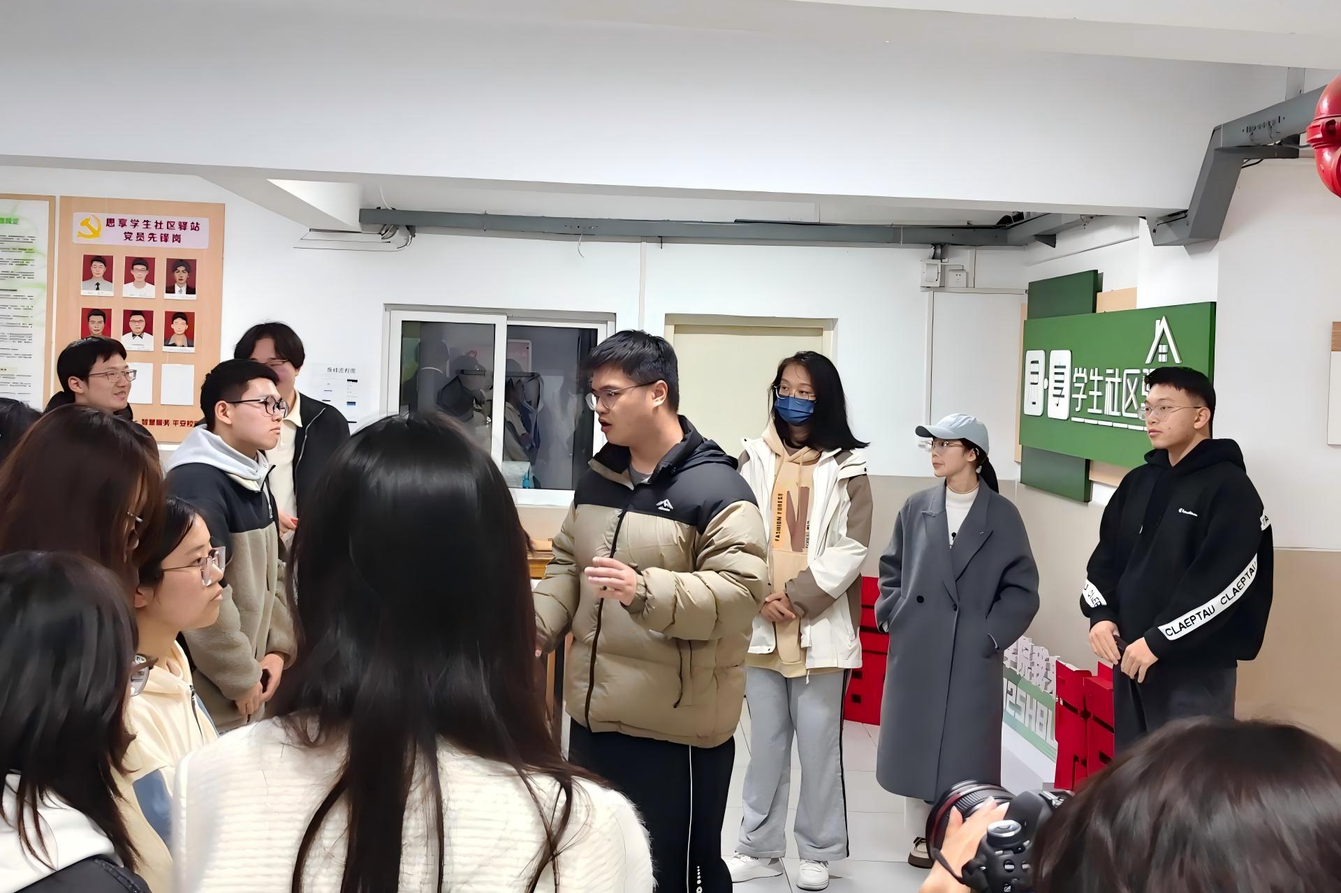 现场考察环节,我校沈秀文、张宇宇、陈斯琦等同学担任讲解员,组织来访同学参观了学生公共服务中心、生命学院学生社区驿站,详细讲解了学校一站式建设的“345”模式、院级学业支持的功能空间与运行模式。双方同学在“一站式”社区现场边走边聊,就社区空间如何更好服务学业发展、学生团队如何深度参与日常管理等问题展开探讨。