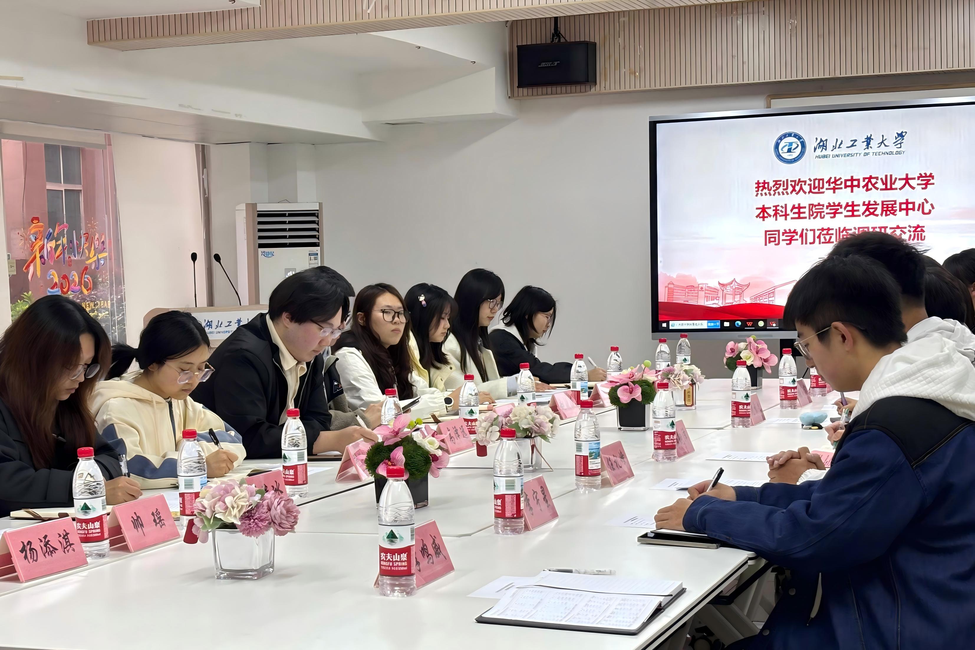 调研会上,双方就本科生学业支持工作的基本情况、品牌特色进行分享交流。任礼峰同学对湖北工业大学“一站式”学生社区学业支持活动进行整体介绍,并重点分享了朋辈导师队伍建设情况,展示了队伍的选拔、培训、管理与激励体系上的实践成果与特色亮点。高泽远同学重点推介了华中农业大学“四航计划”学业支持体系,并对狮山有约、狮山乐学等品牌活动的开展情况进行介绍。交流环节,双方就“学生团队怎么管理”、“朋辈导师怎么激励”、“活动怎么宣传”等多个关键问题展开了充分讨论。我校同学结合实际做法,逐一分享实用经验,同时华农同学也结合四六级备考、考研模考提前开展等工作中的真实案例交流思路。双方在思想碰撞中凝聚共识,在经验交流中互促提升,现场干货满满。