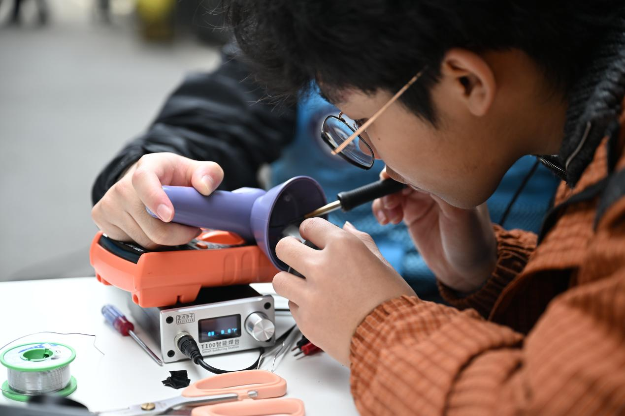 活动当日,蓝电中心的志愿者们充分发挥电气专业所长,面对居民们陆续送来的电水壶、台灯、各类小家电等故障电器,逐一进行故障排查、拆解检修、元器件更换,全流程规范操作;同时耐心向居民讲解电器故障成因,科普日常使用与保养的实用技巧,让居民们修得放心、用得安心。