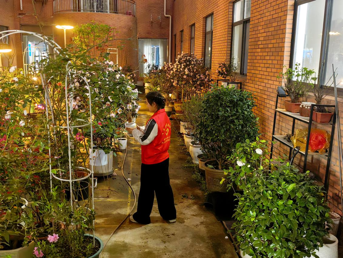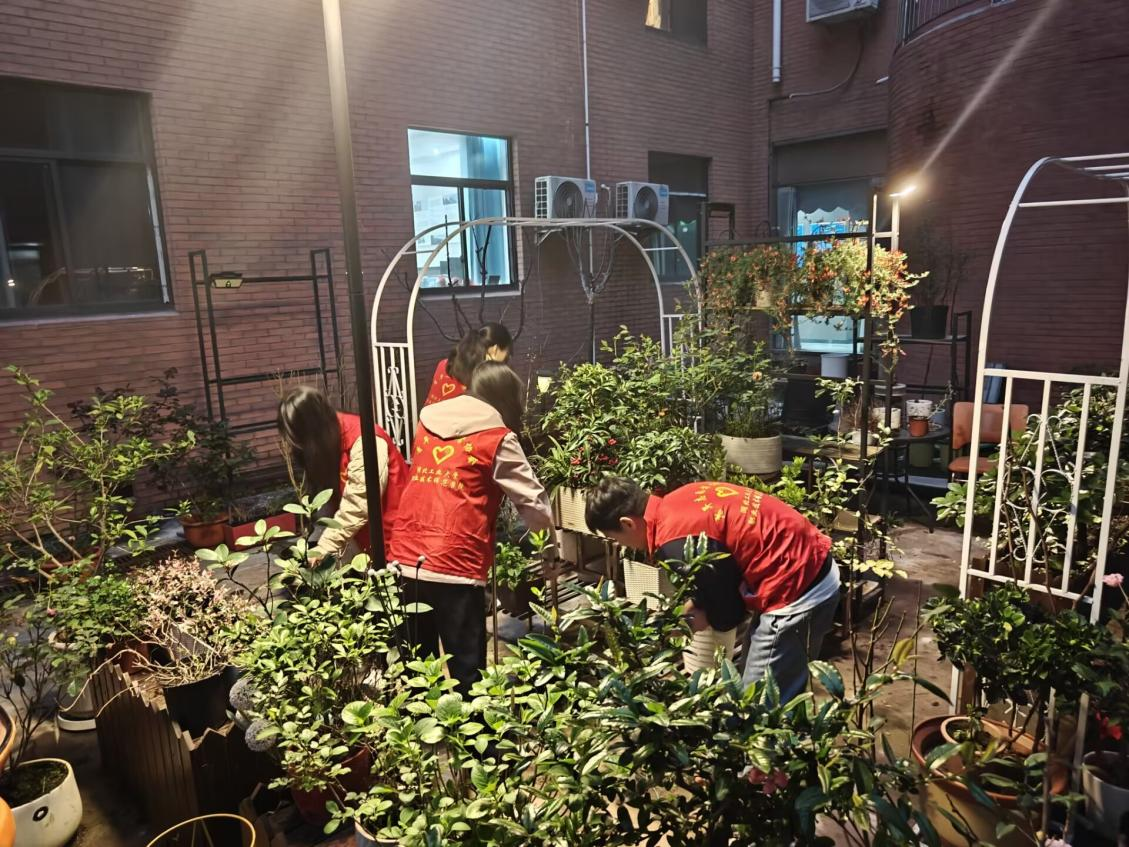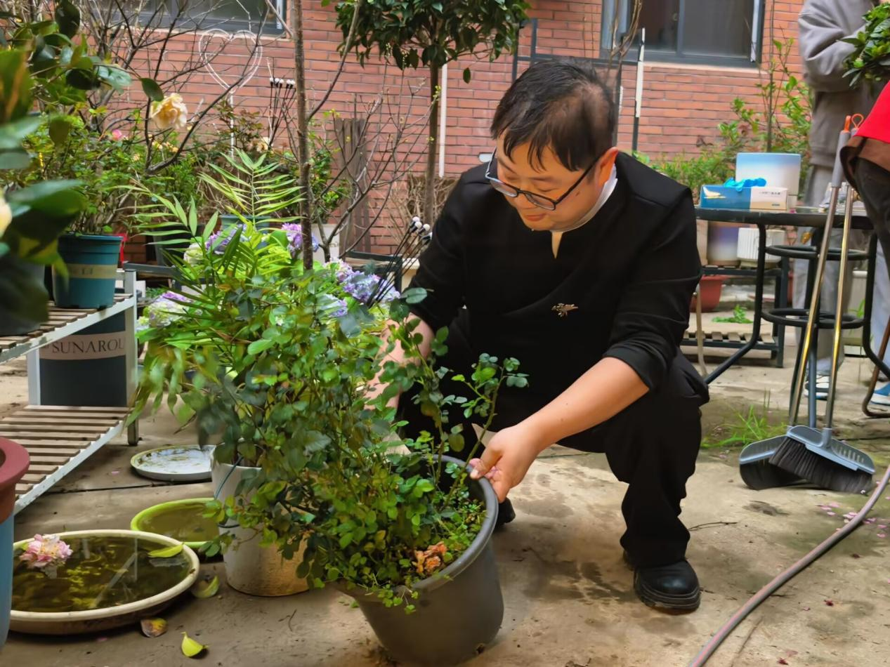 活动现场,学院老师汪曦现场示范杂草与花苗的分辨技巧,细致讲解绿植养护要点。在老师指导下,同学们俯身入丛,拔草、清扫、归拢、摆放,分工协作,经过一个多小时的精耕细作,原本杂乱的角落焕然一新,盆栽和绿植错落摆放、相映成趣。看着自己付出的辛劳都化作了眼前的美好,大家眼里、心里充满了笑意。