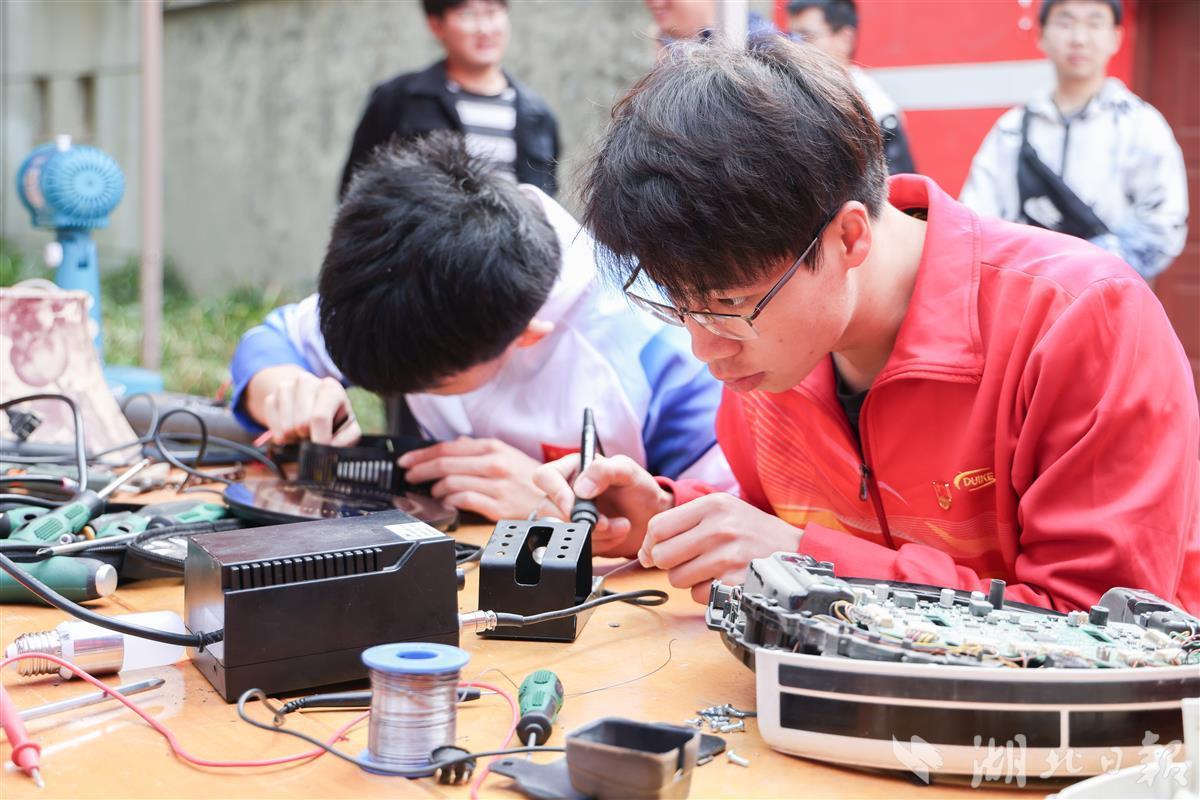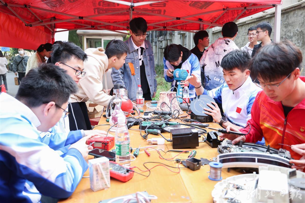 “今天维修的电器有点多,我们在社区摆了两个摊点。”2020级电气工程及其自动化专业学生谢柯说,他所在的维修点,10点钟不到,登记送修的电器就有80多件了。