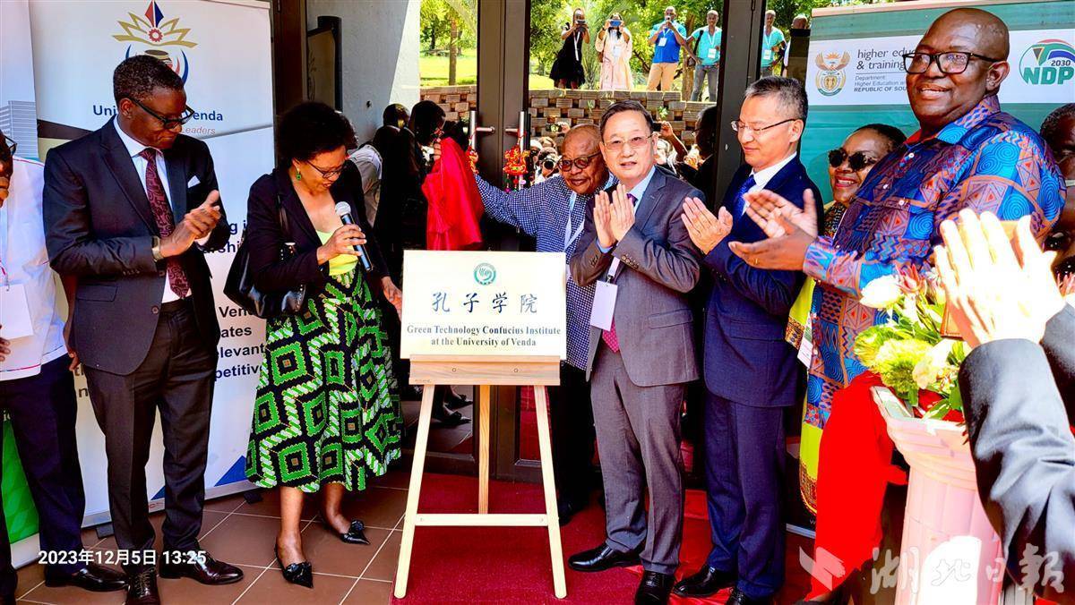 湖北日报讯(通讯员龙艳、陈凌)南非时间2023年12月5日,湖北工业大学与南非文达大学合作共建的绿色科技孔子学院在文达大学揭牌,这是全球首个以绿色科技为特色的孔子学院。