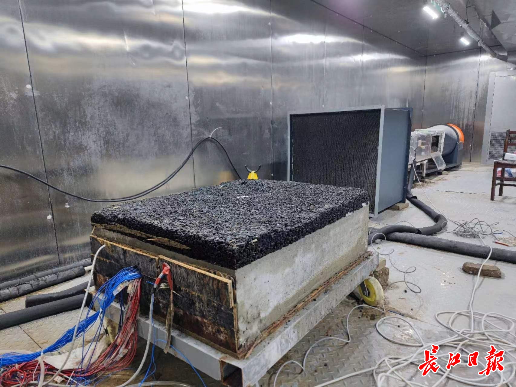 在湖北工业大学湖北省融雪化冰工程科技成果转化中试基地,记者看到,这项技术由监控系统、加热系统和电源系统三个部分组成。通过在路桥表面一定深度内铺设自主研发的高强度、高热转化效率的碳纤维发热模块,当遇到冰雪天气时启动电源,模块发热后就可融化路面冰雪。