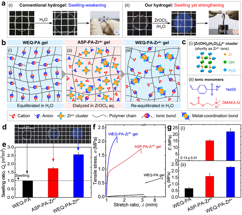 为此,上述研究团队提出通过一种简单的二次平衡法制备了一系列溶胀却力学性能增强的水凝胶材料。