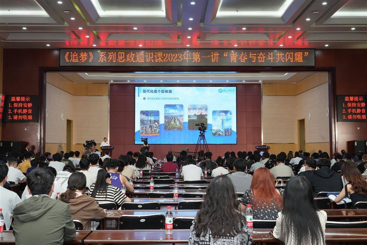 中国式现代化背景下,当代青年要如何扛起时代使命与自身担当?5月17日,湖北工业大学为300多名学生开设了一堂以“青春与奋斗共闪耀”为主题的思政通识课,邀请院士、企业家和学校党委书记、专家、学者以及在校本科生和国际学生组成授课团队,同上一堂“大思政课”,通过理论阐述、故事分享,激励青年学子在中国式现代化新征程中,肩负起新时代湖工大学子的使命担当。