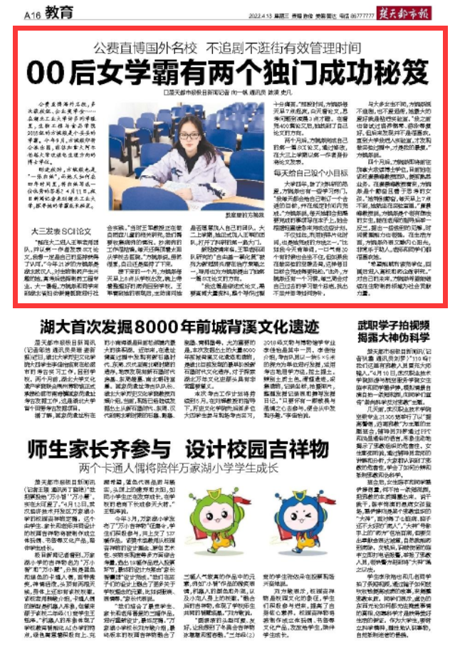 大学四年,能将一张白纸写出不错的答案,除了对科研的热爱,方婉燚也有一些窍门。“我每天都会给自己制订一个合适的目标,并在规定时间内完成。”方婉燚说,每天她都会把需要完成的事项写在本子上,由于精力有限,完成这些计划时,她会根据事情的轻重缓急来。