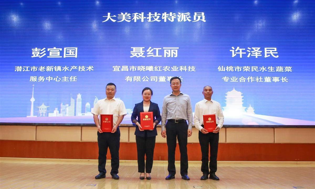 会上,还为宜昌聂红丽、仙桃许泽民、潜江彭宣国等3名科技特派员先进个人颁发了“大美科技特派员”证书。