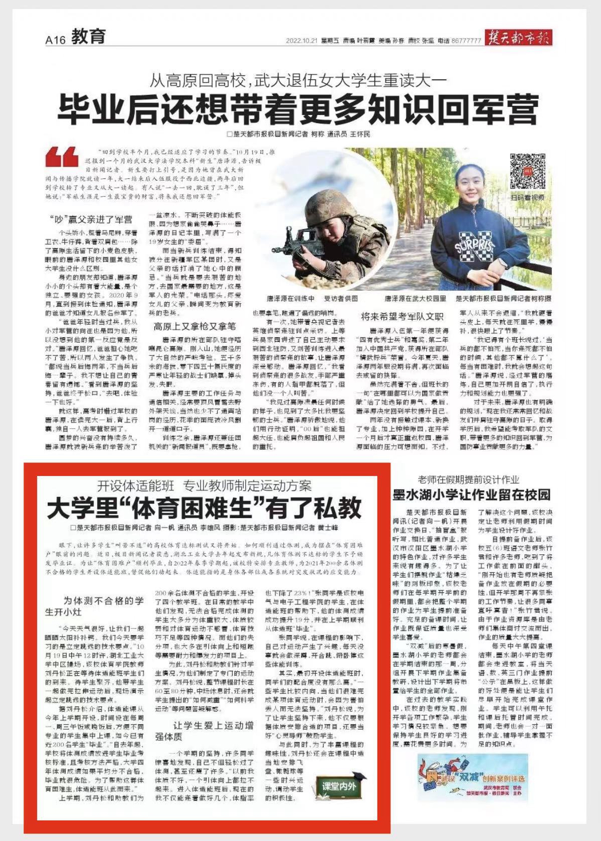 附链接:https://ctdsbepaper.hubeidaily.net/pc/content/202210/21/content_195503.html【楚天都市报】大学里“体育困难生”有了私教,2022年10月21日 A16教育版