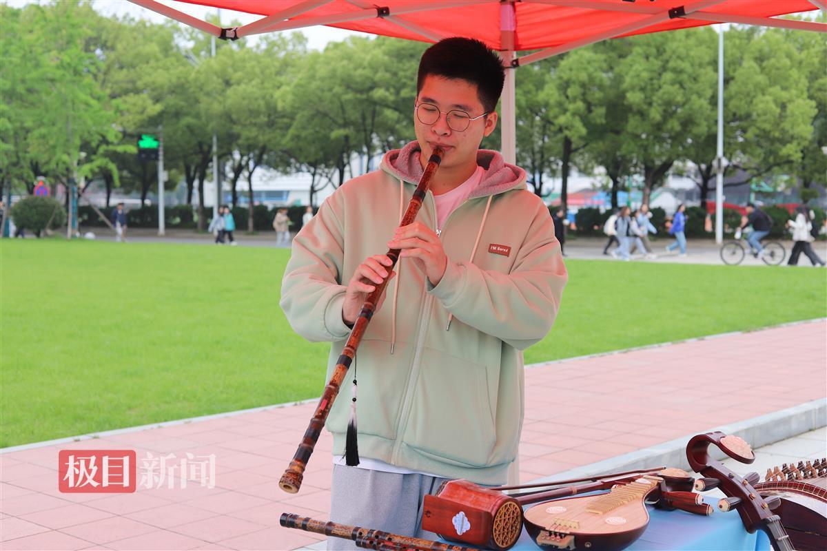 不仅如此,摊位前还摆放着很多乐器,有二胡、琵琶、古筝、大阮、箫、笛子等,民乐社的同学用演奏的方式展示了这些民间乐器的音色,也吸引了很多业余兴趣爱好者。“这次活动不仅宣传了中华文化,还让学生们陶冶情操,释放压力,希望以后有更多这种意义丰富的活动。”一位路过的老师在看过节目后说。