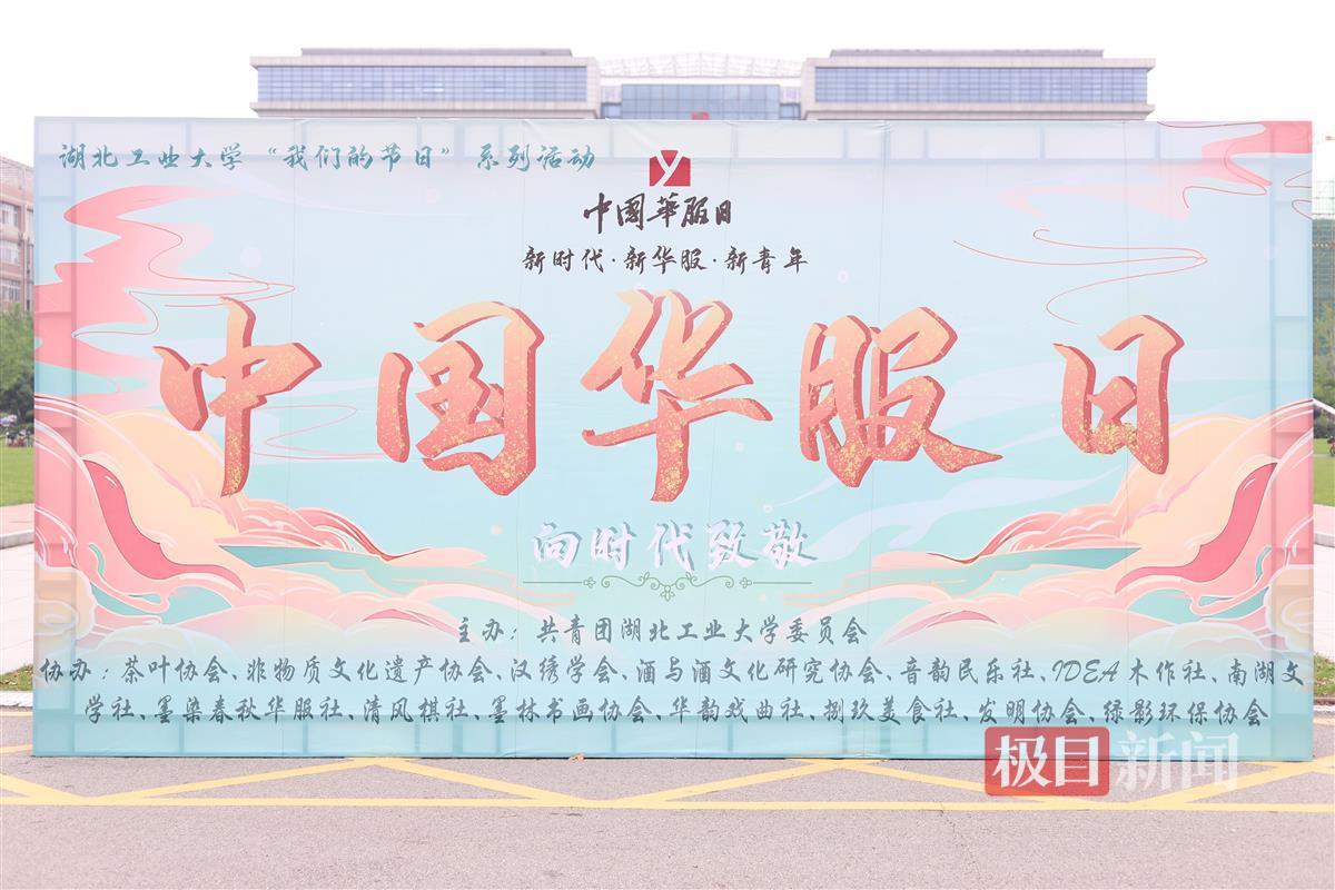 着华服,品美酒,饮清茶,投壶,下围棋……近日,湖北工业大学第一届“中国华服日”嘉年华在图书馆广场举办。据悉,本次嘉年华共有13个社团展演。在这个春光明媚的日子里,该校学子共同感受中华传统文化的魅力,共筑文化自信。