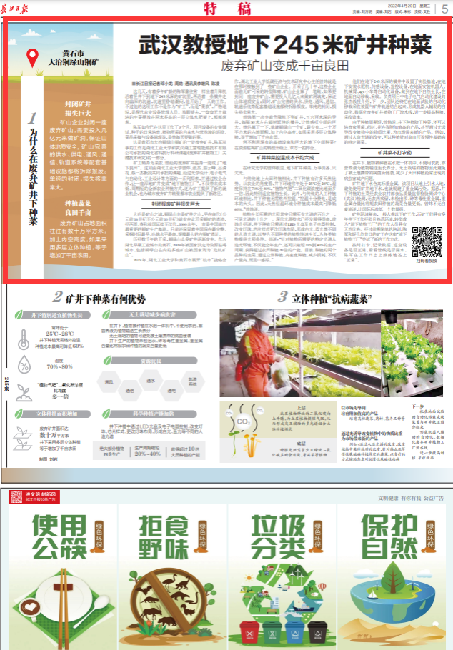 矿工转身为菜农,曾经的废弃矿井摇身一变成了“地下良田”。这项由湖北工业大学曾炜、张杰、詹云峰、吕清花、蔡一杰教授共同承担的课题,经过光学设计、电子电气与自动化、工业设计等方面的一系列探索,并通过校企合作,让一座深地矿井变成“地下植物工厂”,不仅带来成本低、周期短的全新农业种植方式,还为矿工提供了新的就业机会,也为城市废弃矿井转型都市农业提供了新路径。