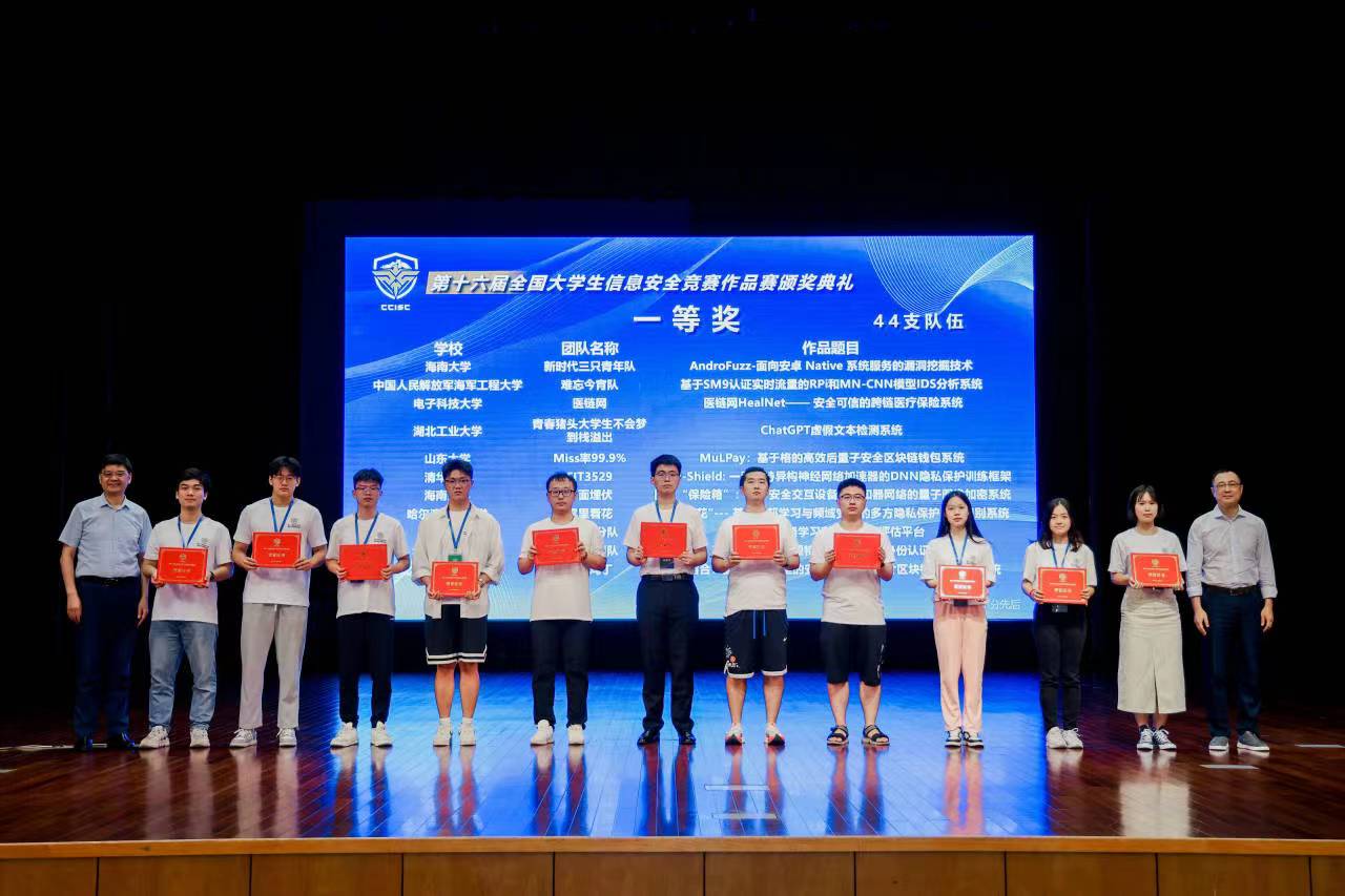 据悉,全国大学生信息安全竞赛是网络空间安全领域最高水平的权威赛事,被誉为网络空间安全领域“国赛”。本届作品赛共有106所高校的319支队伍入围全国总决赛,最终评选出一等奖44项,二等奖66项,三等奖88项。