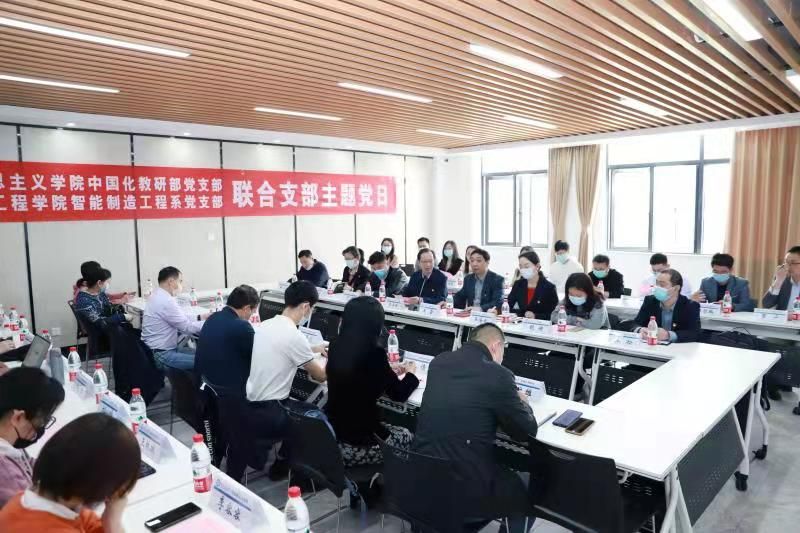 参观结束后,两个党支部开展了联合主题党日活动,聚焦课程思政和教师支部建设,全国高校青教赛一等奖获得者华倩教授以《课程思政的提出与建议策略》为题,从课程思政的提出与内涵、难点与建设策略以及建设理念三个方面进行交流。两个党支部的书记、主任分别就党支部建设、专业人才培养、课程思政建设作了题为《踔厉奋发守初心——不断提高党支部建设水平》《大数据时代毛中特课程建设的智能化创新探索》《智能制造专业人才培养及课程思政建设情况》等的交流发言。