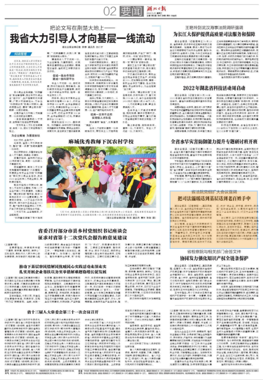 近年来,湖北深入学习贯彻习近平总书记关于做好新时代人才工作的重要思想,大力引导人才向基层一线流动,统筹实施院士专家企业行、“科技副总”、科技特派员、“博士服务团”等倾斜基层人才专项,选派各类人才投身企业和基层一线解难题、促发展,为湖北高质量发展提供了有力的智力支撑。