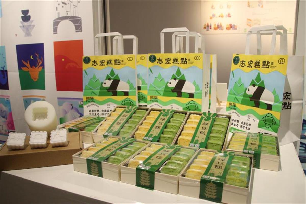 他们与武汉志宏糕点合作,设计了长江限定款绿豆冰糕。包装袋上,蓝色的江水,绿色的青山,一只熊猫穿梭其间,下方特别醒目地印着“志在好糕,古法匠心。关注生态,保护长江”字样。糕点上精美的黄鹤楼、河豚、梅花等花纹,带给品尝者视觉与味蕾的双重享受。