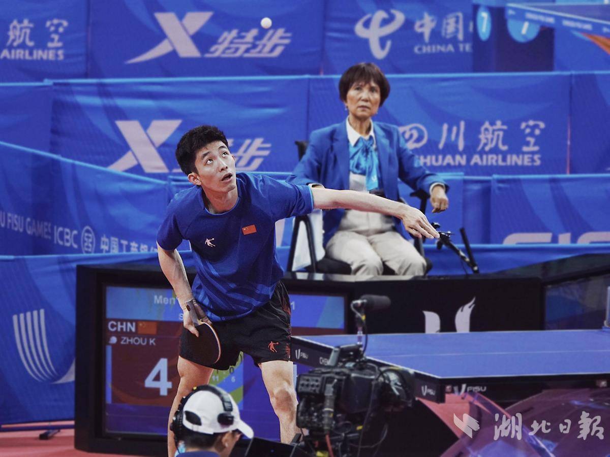 此前,8月1日晚,周恺与队友薛飞、徐瑛彬一起在决赛中以3:0战胜中国台北队,夺得此次大运会乒乓球男子团体冠军。