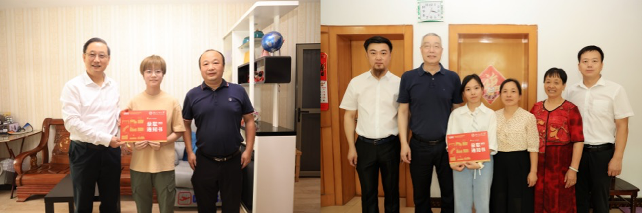 “你是小闵吧,恭喜你!这是学校为你准备的新生大礼包,祝贺你!”彭育园书记微笑着,与综合总分专业排名第一的小闵握手,亲手送上录取通知书和70周年校庆大礼包。彭育园书记详细询问了小闵的大学生活准备情况及奋斗目标,鼓励其继续保持良好的学习状态,“大学时光短暂,未来无限美好,要认真规划大学生活,成就人生梦想!”彭育园书记语重心长地说。小闵的父亲动情地握住彭书记的手,“丫头终于考进她梦想的学校和专业了!”小谢是2023级被我校录取的艺术类综合分第一名,一家三代五口人,租住在武汉市东西湖区一间不足70平方的房子,校长冯征一进家门,亲切与小谢一家人握手,“谢谢你们的信任,选择湖北工业大学,恭喜你们!”“我们租房住在这里,就是为了孩子们读书,孩子就想读湖工大的数字媒体艺术专业,校长这么大热天来到我们家里,谢谢校长!”小谢奶奶热情招呼我们坐下。每到一个学生家里,我们都详细解答了学生及家长对于未来大学生活关心关注的问题,“孩子的专业培养方案会是如何?”“大学校园生活是否像传说那样多姿多彩?”随着我们的交谈逐渐深入、热烈,孩子们眼中没有了见面时的紧张与羞涩,流露出对未来大学生活的期待。我们从学生家长带着笑意、逐渐亲近的眼神中,感受到了家长对学校的信赖。