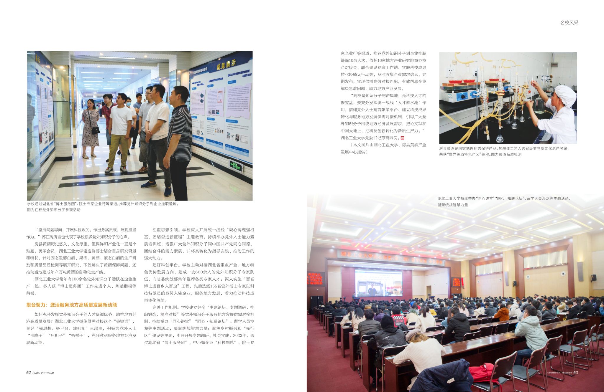 建好科创平台。学校主动对接湖北省重点产业、地方特色优势发展方向,建成一支600余人的党外知识分子专家队伍,向省委统战部常年推荐各类专家人才;深入实施“百名博士进百乡入百企”工程,先后选派155名党外博士专家以科技特派员的身份入驻企业,服务地方发展,着力推动科技成果转化落地。