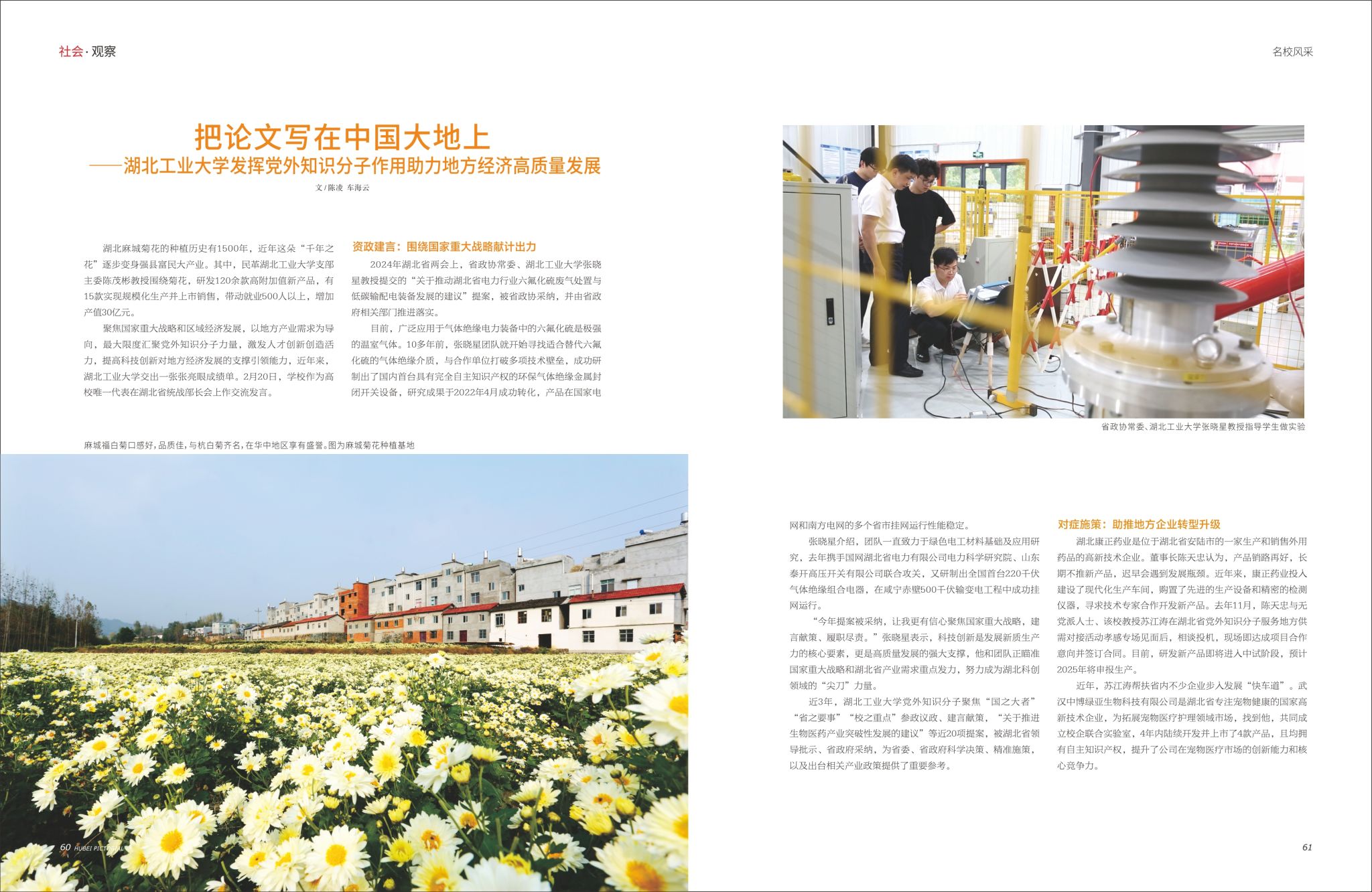 “高校是知识分子的密集地,是科技人才的聚宝盆,要充分发挥统一战线‘人才蓄水池’作用,搭建党外人士建言献策平台、建立科技成果转化与服务地方发展供需对接机制,引导广大党外知识分子围绕地方经济发展需求,把论文写在中国大地上,把科技创新转化为新质生产力。”湖北工业大学党委书记彭育园说。