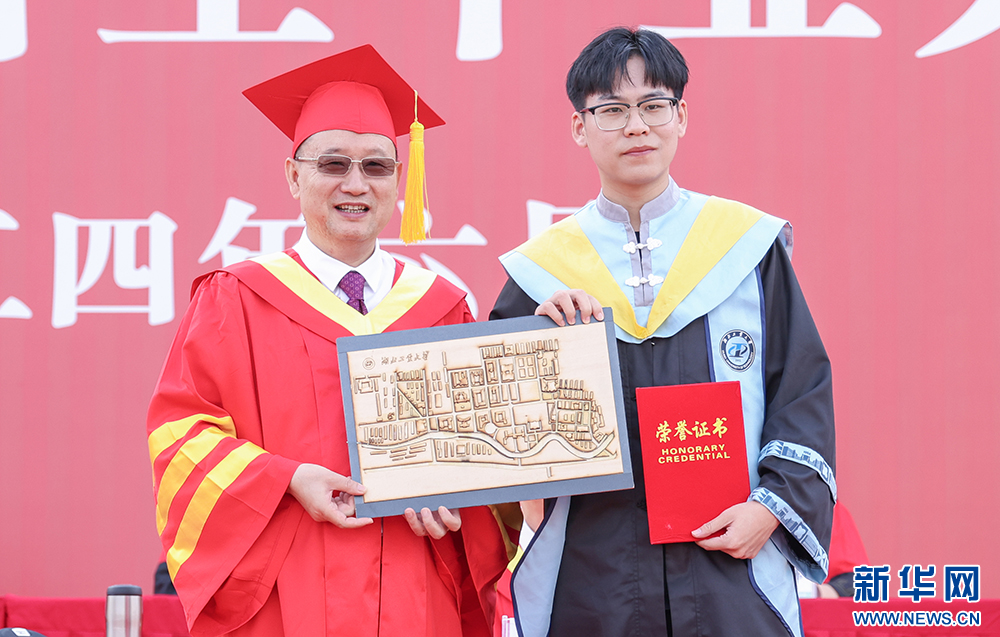 每年的高校毕业季,学子该怎样表达对母校的眷恋?6月18日,在湖北工业大学2024届本科生毕业典礼上,14名“00”后毕业生代表在领取毕业证书同时,用“花式整活”——展示自己别具特色的毕业纪念物,寄托自己对母校的独特情怀。