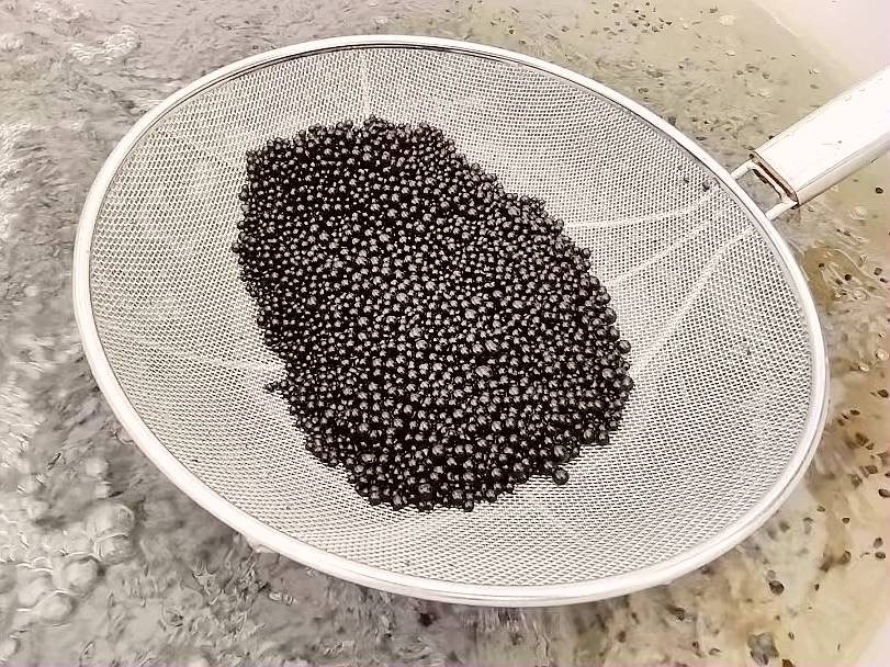 夏至时节,走进位于咸宁市嘉鱼县新街镇晒甲山村的蓝野生物科技嘉鱼有限公司,迎面就是一个联排大棚,棚内一排排半人高的大桶里浪花翻滚,一粒粒褐色的“珍珠”随着浪花上下翻腾。