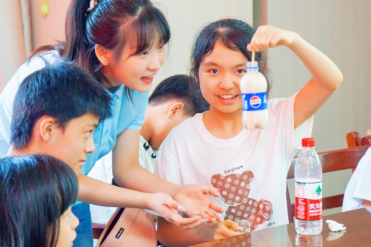 结课当天,大学生志愿者为孩子们带来“趣味物理——何为‘工匠精神’”主题小课堂,通过“真有两把刷子”“拉不开的书”“筷子提米”等摩擦力相关物理小实验进行演示,讲解了生活中的摩擦力,并宣讲了“大国工匠”故事与“工匠精神”。通过一个个有趣的小实验,让孩子们感受到神奇力量背后的科学知识,极大吸引了孩子们探究物理知识奥秘的兴趣。