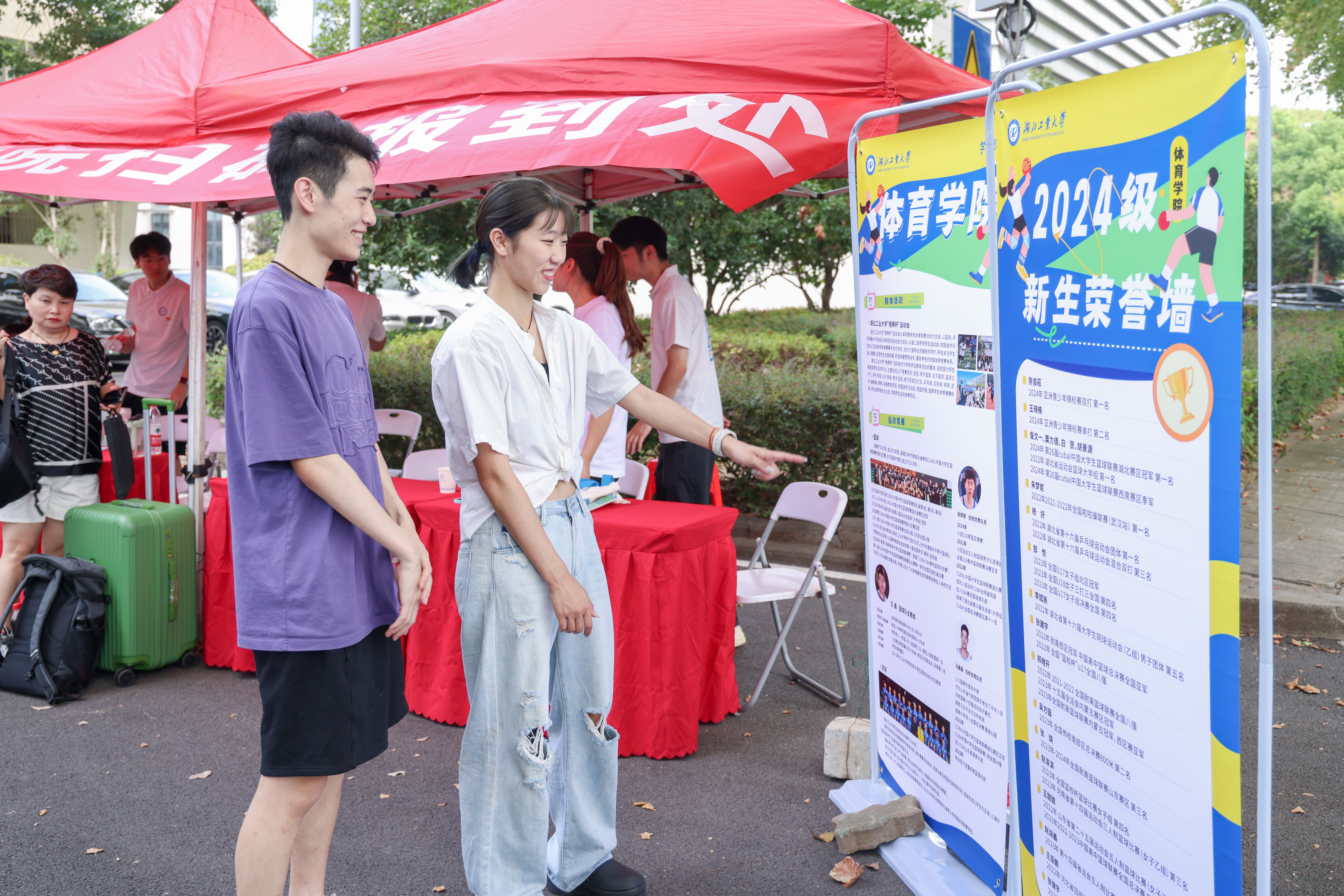 长江日报大武汉客户端9月13日讯 “乒乓球冠军来湖工大报到了!”9月11日,湖北工业大学本科生报到首日,国家乒乓球青少集训队队员陈俊菘和王晓楠来到该校报到。在今年7月份举办的第28届亚洲青少年乒乓球锦标赛中,陈俊菘获得了3项冠军,王晓楠获得了1金2银。报到现场,不少爱好乒乓球运动的学生找他们合影。