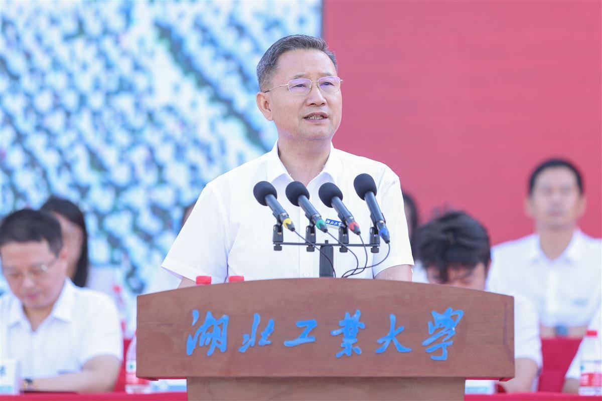 “面对以人工智能、量子信息技术、新材料技术、分子工程、石墨烯、虚拟现实、可控核聚变、清洁能源以及生物技术等为主的技术革命,我校积极对接国家绿色工业发展和传统工业绿色化的战略需求,聚焦湖北省五大优势产业发展需要,深入实施以绿色工业为鲜明特色的‘135+’学科发展战略,实施专业调优计划,开办31个国家级一流专业,兴办芯片产业学院等4个现代产业学院和1个卓越工程师学院等。这所大学,值得大家各自努力,顶峰相见!”彭育园说,70余年来,一代代湖工大人埋头奋进,立足湖北、服务工业,交出了一张张亮眼的成绩单,学校工业背景深、工学体系全、服务产业领域广。新时代湖北加速推进新型工业化和制造强省建设,为同学们参与到新型工业化的征程之中更是提供了无限的机遇。
