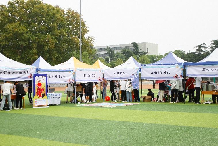 参展社团共分为学科技术类、创新创业类、文化艺术类、体育活动类、志愿公益类、思想政治类等六大类。游园会设置了打卡集章、投壶游戏和歌舞表演等环节,参与游戏,集齐12个印章即可参与抽奖。