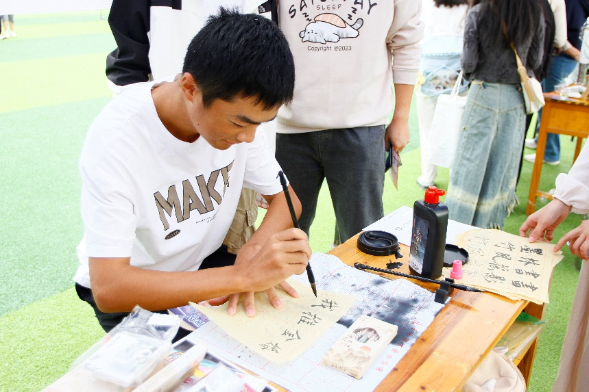 茶叶协会发起了猜茶名的小游戏,猜对即可抽奖并获得印章。游园会刚开始,他们的摊位就被团团围住,“我们早上6点多就开始准备了,看到大家对茶文化这么感兴趣,我们也很开心,希望今年能吸引更多热爱茶文化的同学加入。”茶叶协会的副会长胡锦涂介绍道。