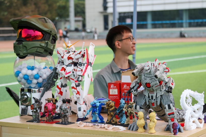 咕咕模型社的同学们在招新点位上展示他们的各种模型