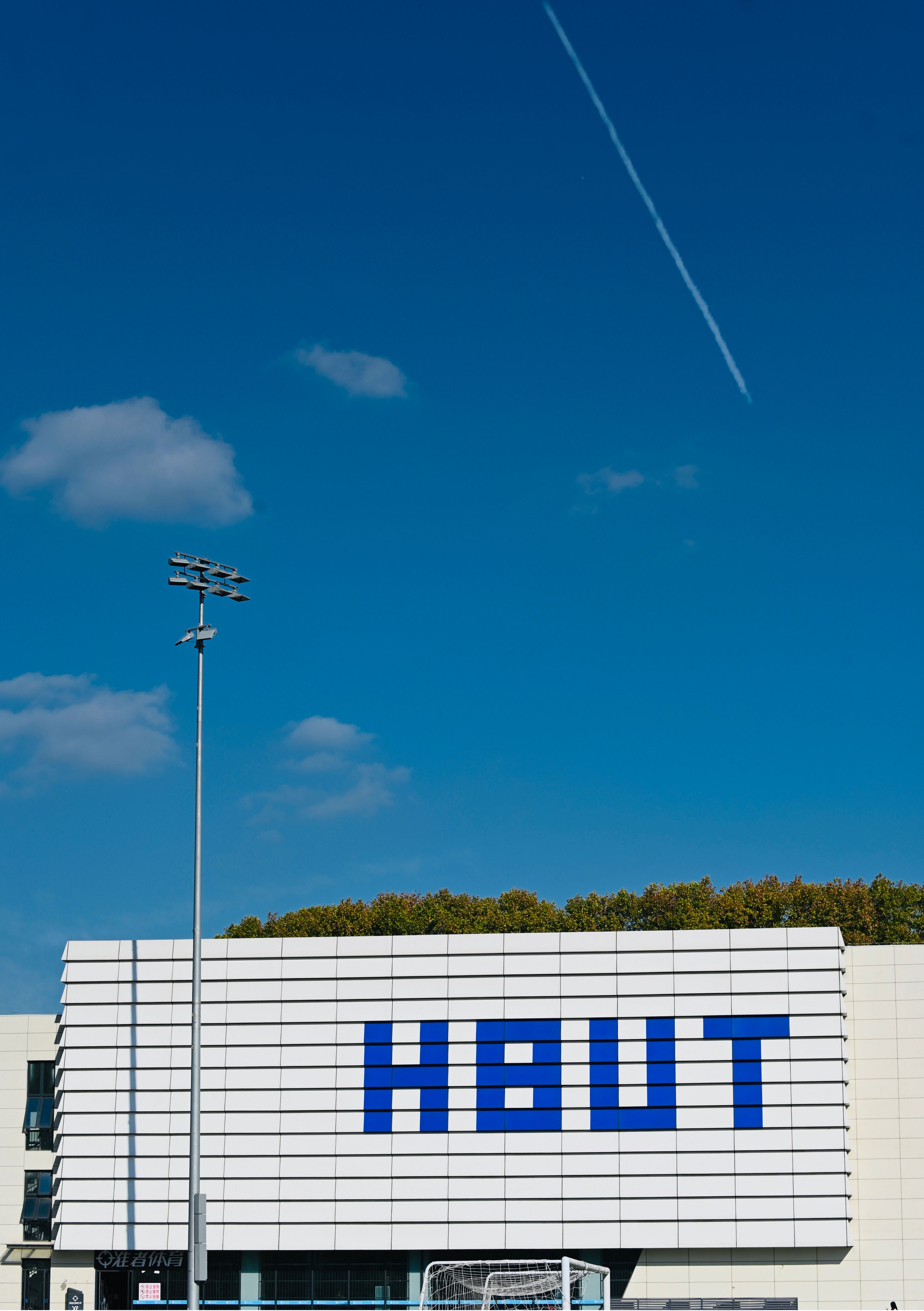 《蓝天与湖工大》。城市摄影队大学生小分队罗海宾摄于湖工大新体育馆