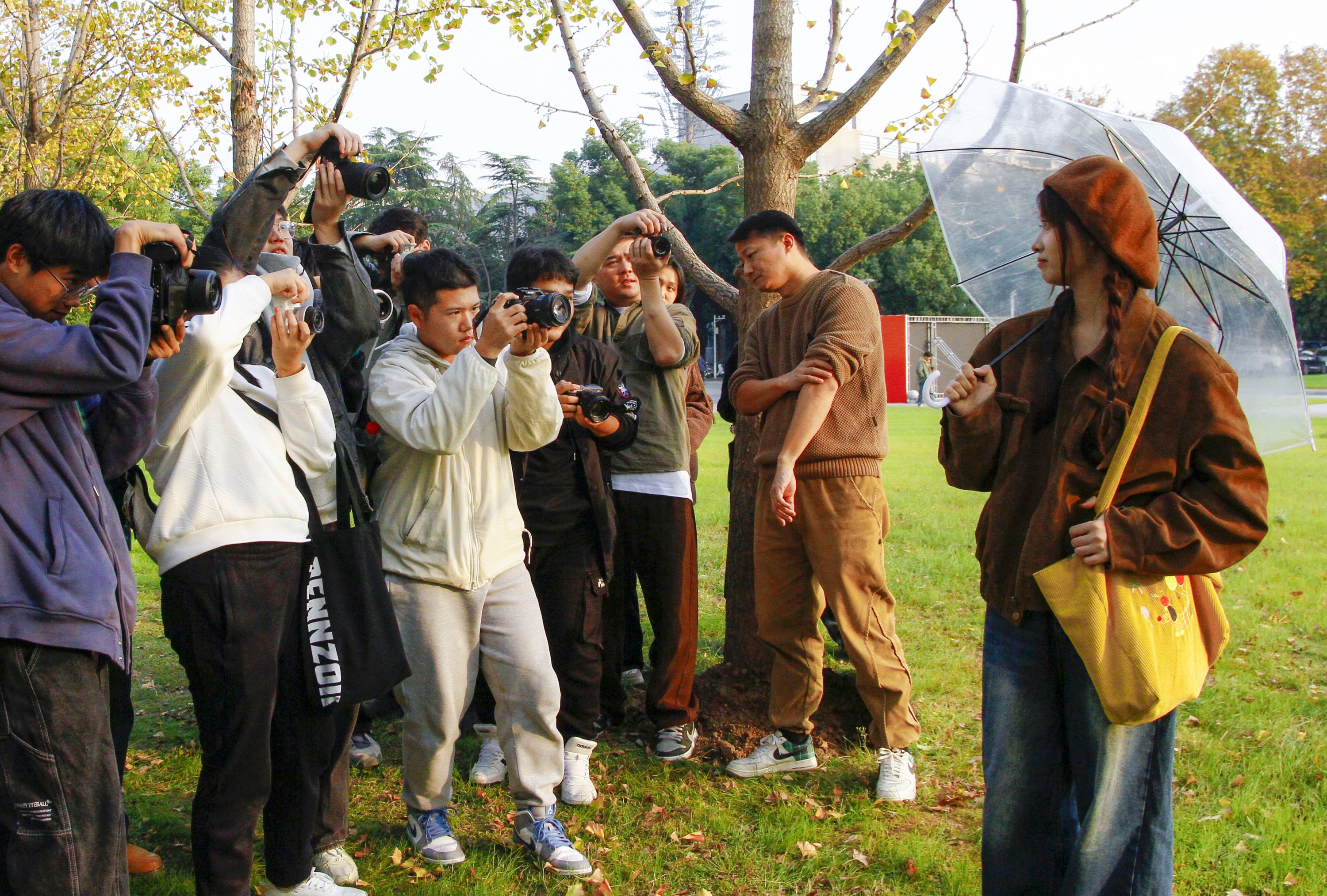 分享结束之后,长江日报城市摄影队导师带领学生们在校内以“校园风光”为背景,开展人像拍摄创作,并为学生们提供拍摄指导。