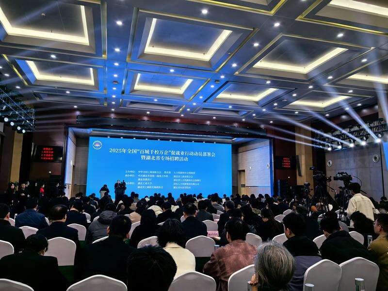 在湖北工业大学举行的2025年度“百城千校万企”促就业行动动员部署会现场。中青报·中青网记者/雷宇
