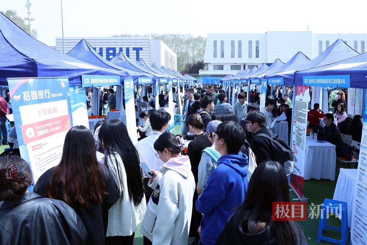 当日上午9时不到,湖北工业大学的中区操场上,湖北主会场的500余家招聘企业已经就位,不时接受来访高校毕业生的咨询。极目新闻记者在现场看到,参与招聘的企业有九州通、盛隆电气、高德红外等知名企业,招聘岗位涵盖人工智能、互联网、制造业、金融、文创等传统和新兴行业。