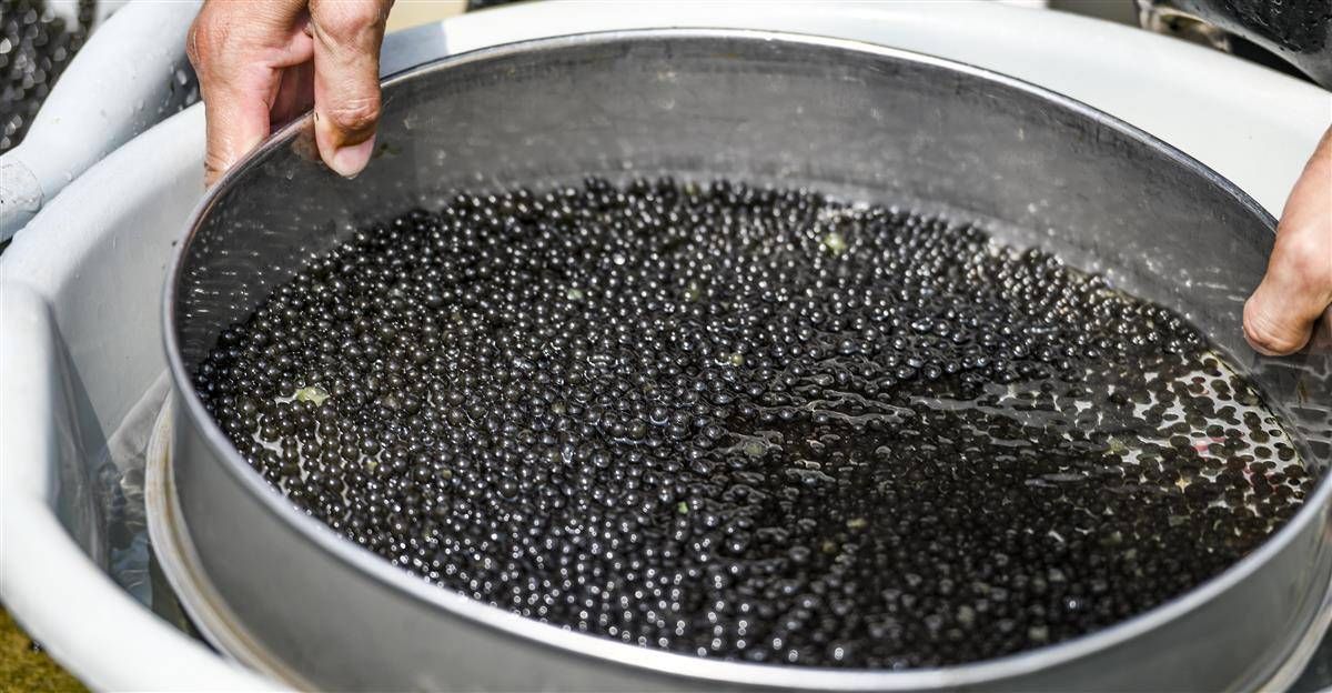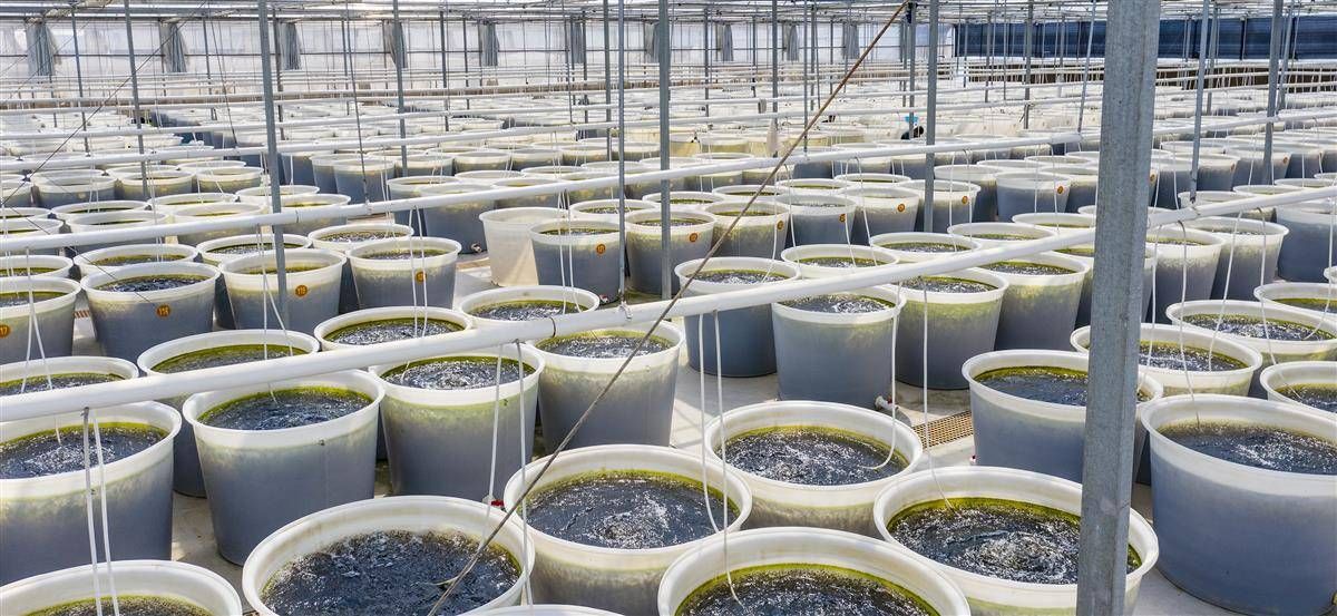 5月13日,位于嘉鱼县的蓝野生物科技嘉鱼有限公司700多个塑料大缸里,球形葛仙米被增氧机搅动上下翻滚,均匀受光。公司负责人庞建梅介绍,葛仙米俗称珍珠菜、天仙菜,鲜品在北京、上海、深圳一线城市畅销。公司与湖北工业大学成立“湖北工业大学葛仙米养殖与利用研究中心”科研平台,通过科技手段实现葛仙米濒危物种保护、规模化养殖与提升水稻品质相耦合,现具备年产15万斤葛仙米鲜品的生产能力。(湖北日报农村版通讯员 雷平 摄)