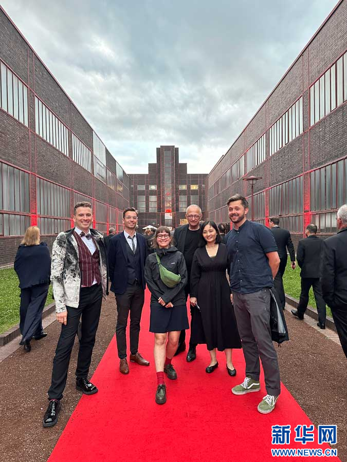 图为在德国红点大奖现场,中德工业设计研究院负责人程文婷博士/副教授(右2)与德国PAP设计团队