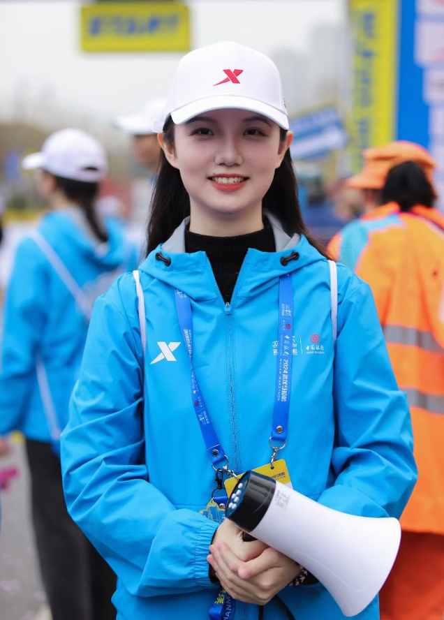 2024年12月光谷马拉松的冷雨,周蜜至今记忆犹新。当时她担任全程选手存衣岗大组长,淅淅小雨里气温湿冷,她和伙伴们从清晨坚守到午后,长时间站立让身心俱疲,但面对每一件衣物,依旧细致核对、认真值守。直到看见完赛选手取回衣物时的释然笑容,所有疲惫都烟消云散,也让她对志愿的意义有了更深的理解。