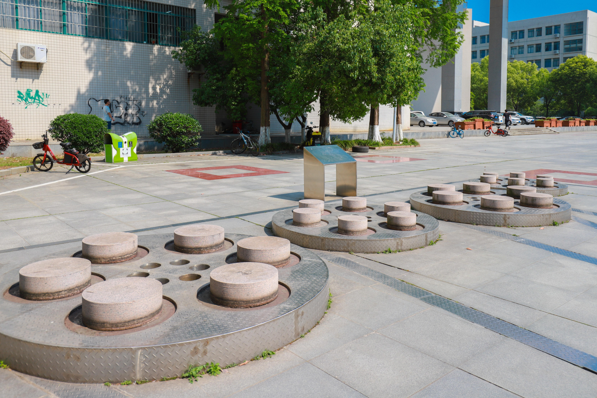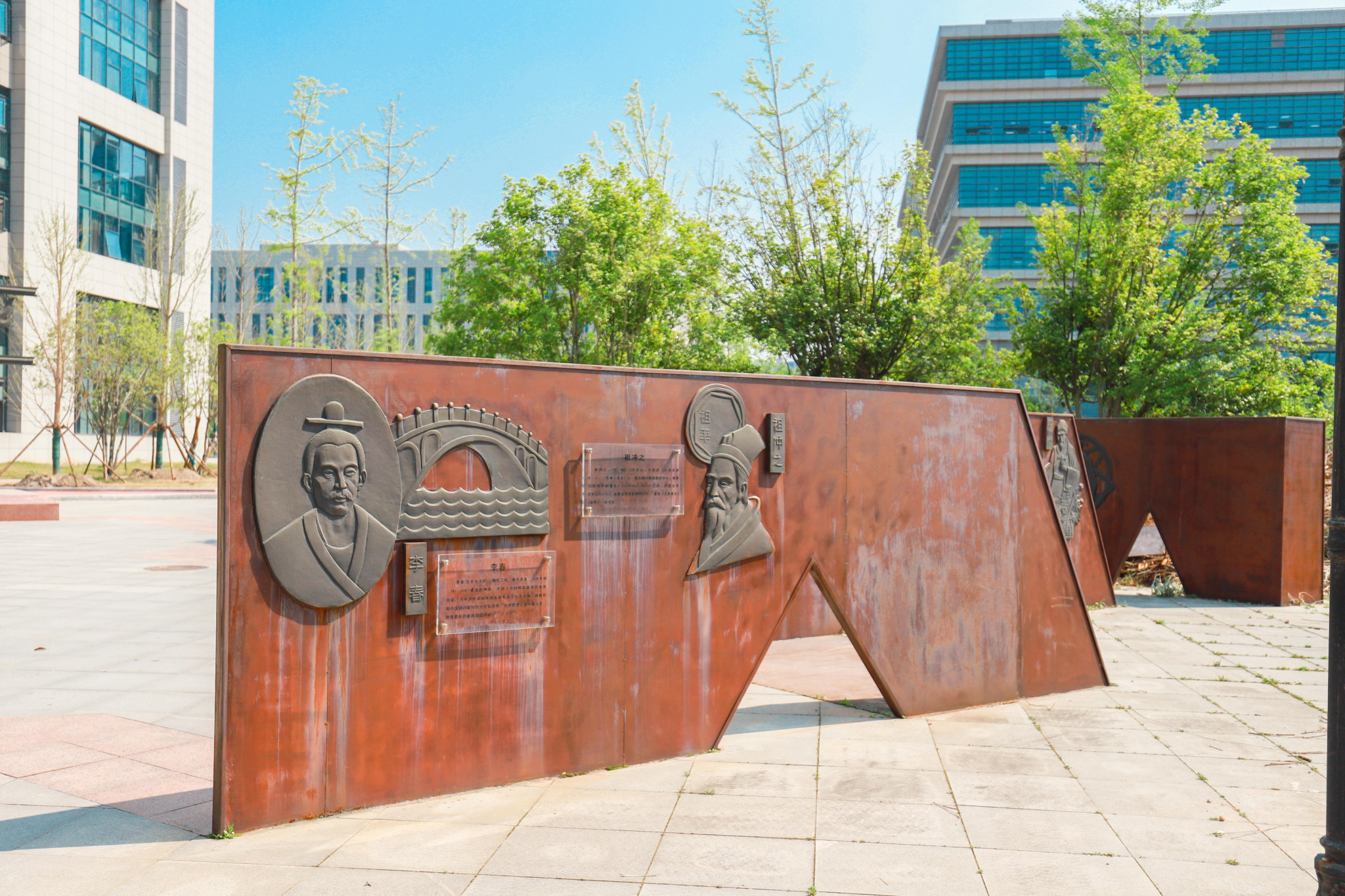 活字印刷术雕像,高2.8米,主体为不锈钢锻打而成,地面铺设石材。