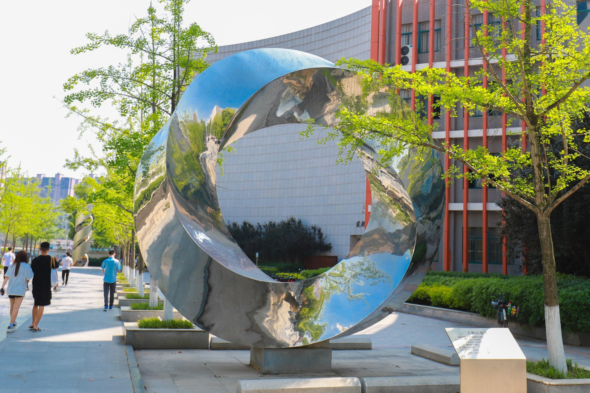 莫比斯环,高5米,长5米,采用不锈钢板锻打而成,并经过镜面抛光处理。