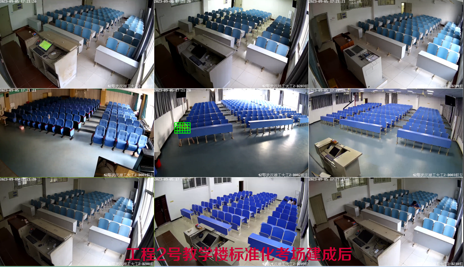同样,走进工程2号楼,教室硬件环境也在不经意间发生变化。今年暑假,历时1个月55间标准化考场顺利完成建设。网上在线巡查、信号侦测阻断、电子时钟、5G屏蔽仪上墙集中管控等各项功能一应俱全,新学期即将正式投入使用,可满足学校各类国家教育考试需求。